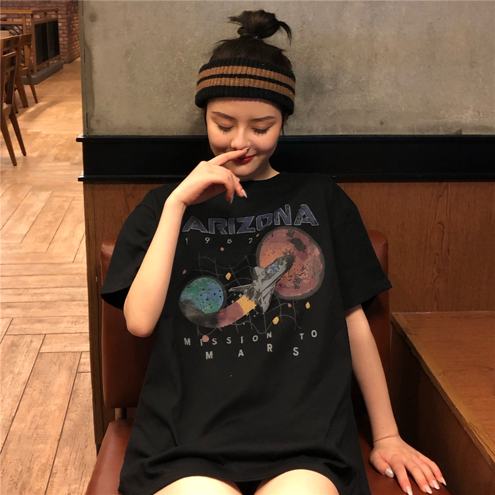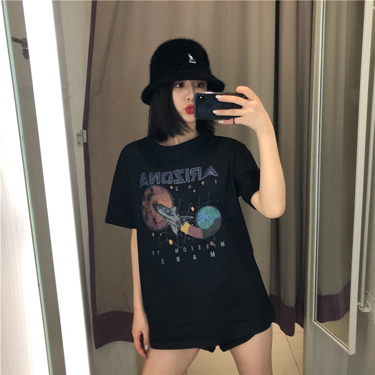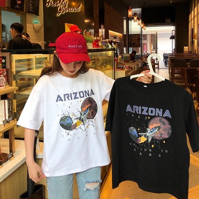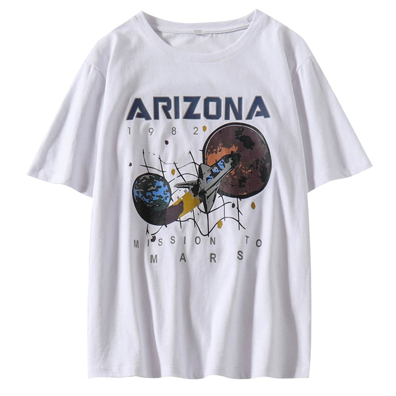 เสื้อยืดแขนสั้น ทรงหลวม สไตล์เกาหลี สําหรับผู้หญิง: สีขาว, L