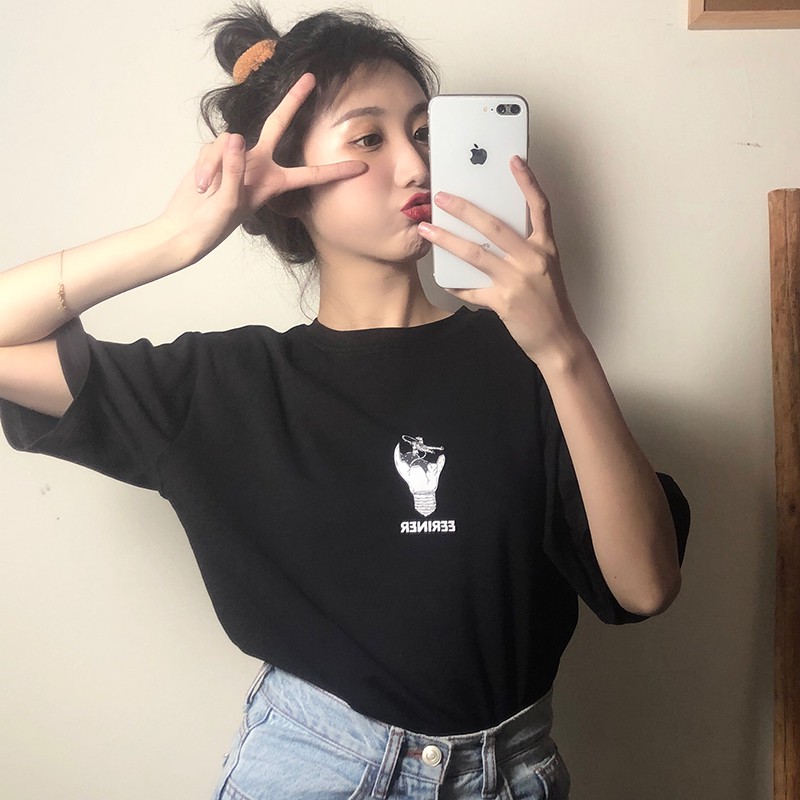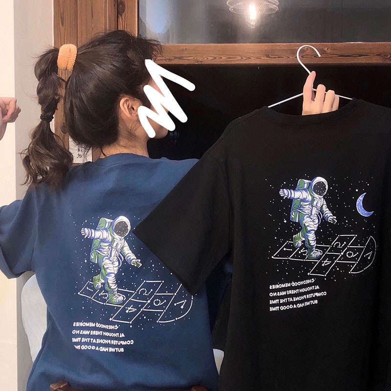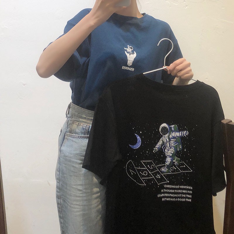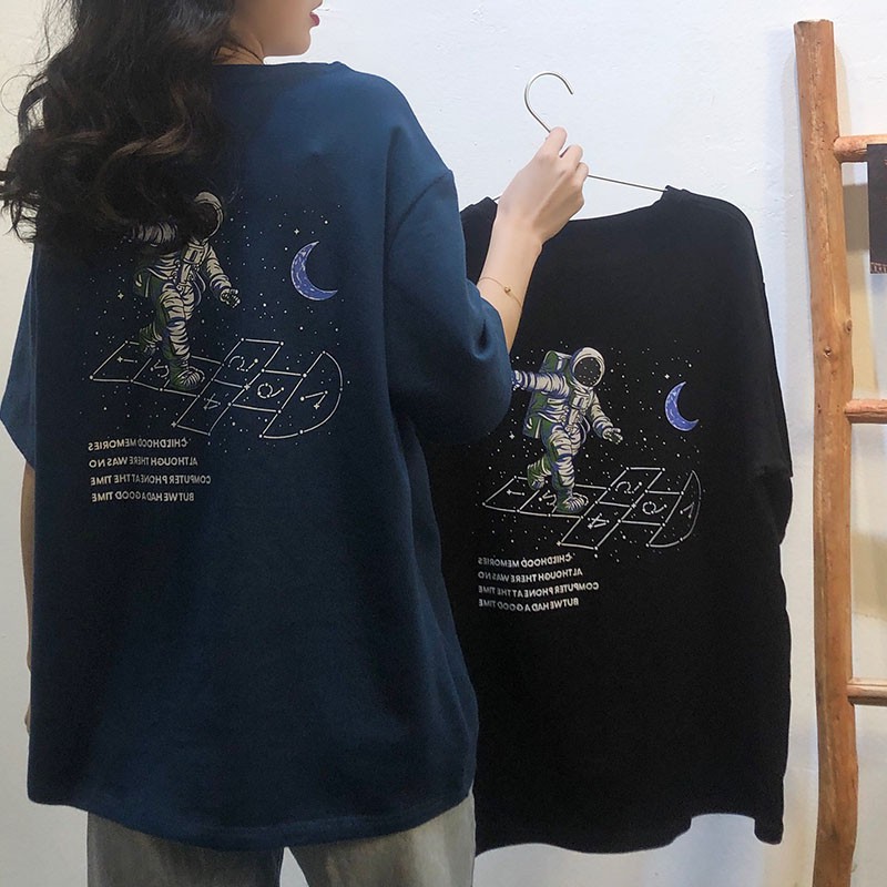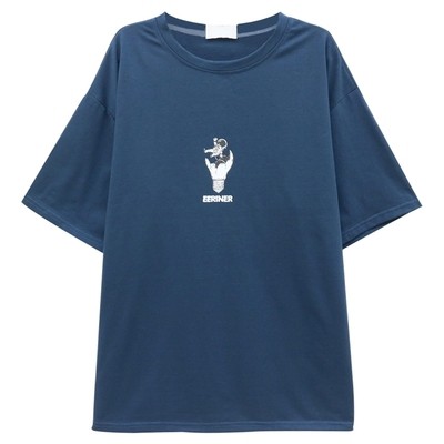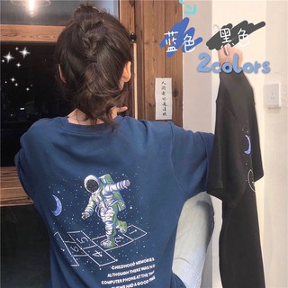🔥ส่งไวจากไทย🔥ESHOW เสื้อยืดแขนสั้นผู้หญิง ทรงโอเวอร์ไซซ์ พิมพ์ลาย สไตล์เกาหลี:สีน้ำเงิน, ไซซ์ XXL