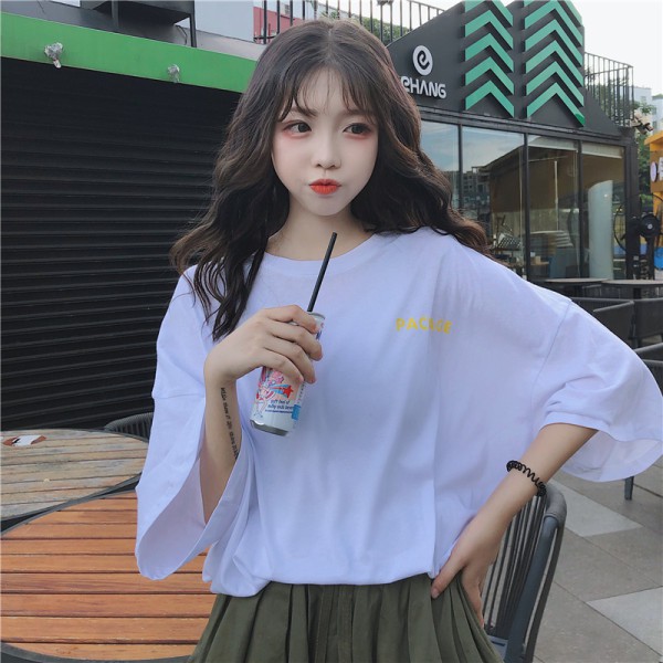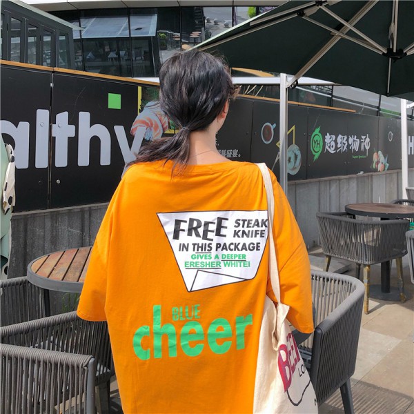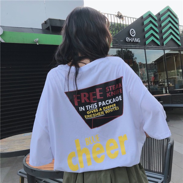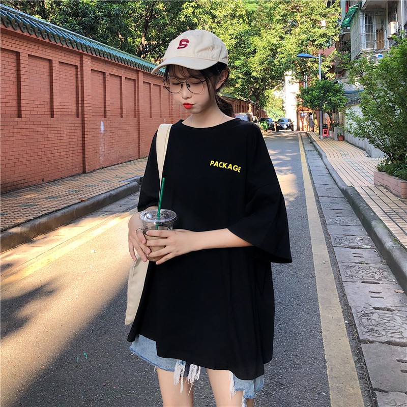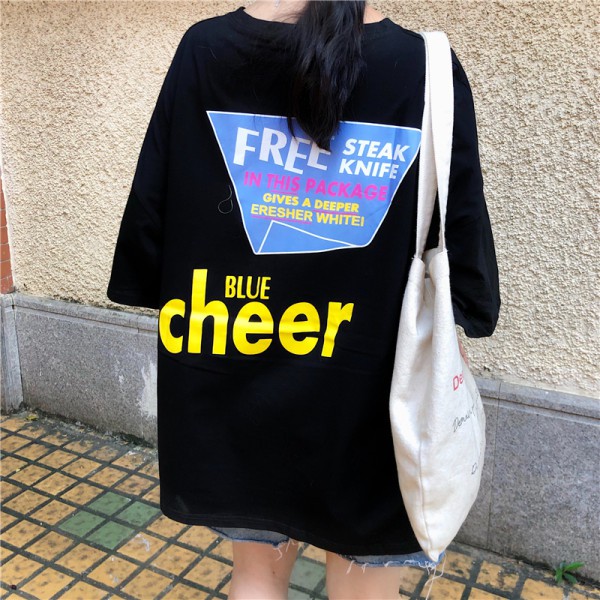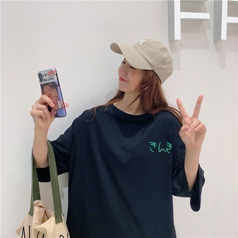 เสื้อยืดแขนสั้น พิมพ์ลาย ทรงหลวม โอเวอร์ไซซ์ สไตล์เกาหลี สตรีท แฟชั่นวัยรุ่น สําหรับผู้หญิง สีดํา ไซซ์ L