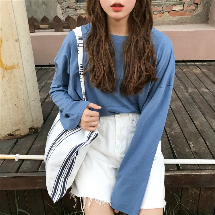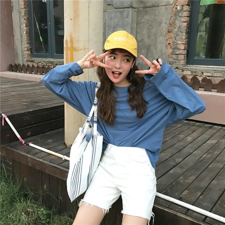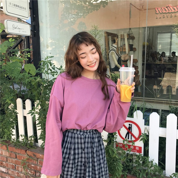 🔥ส่งไวจากไทย🔥เสื้อแขนยาว ชนิดผ้าฝ้าย ทรงโอเวอร์ไซซ์ สไตล์เกาหลี สำหรับผู้หญิง:Purple,M