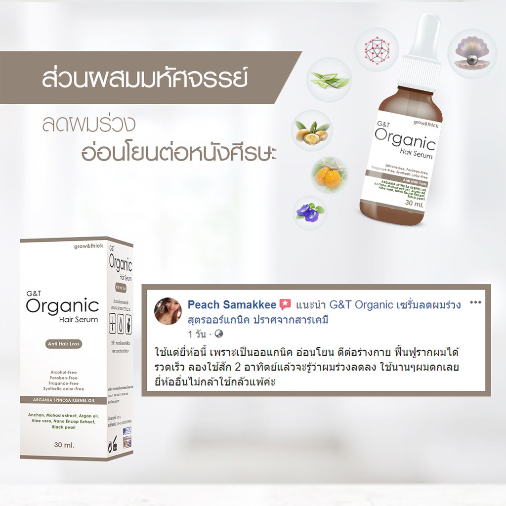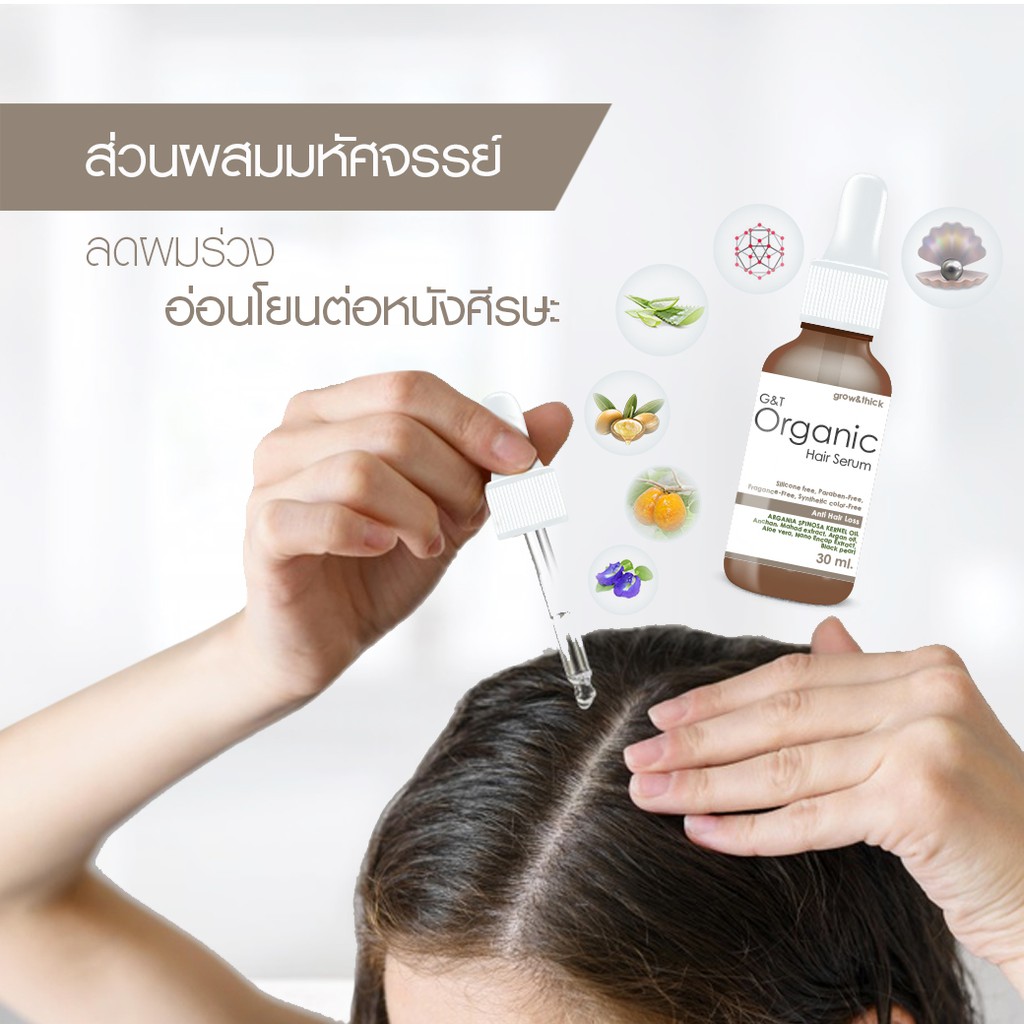 ลดผมร่วงเพิ่มผมใหม่3เท่า เซรั่มปลูกผม G&TOrganic Hair Serum เซรั่มบำรุงผมสูตรออร์แกนิคด้วยสารสกัดจากสมุนไพรธรรมชาติ30 ml