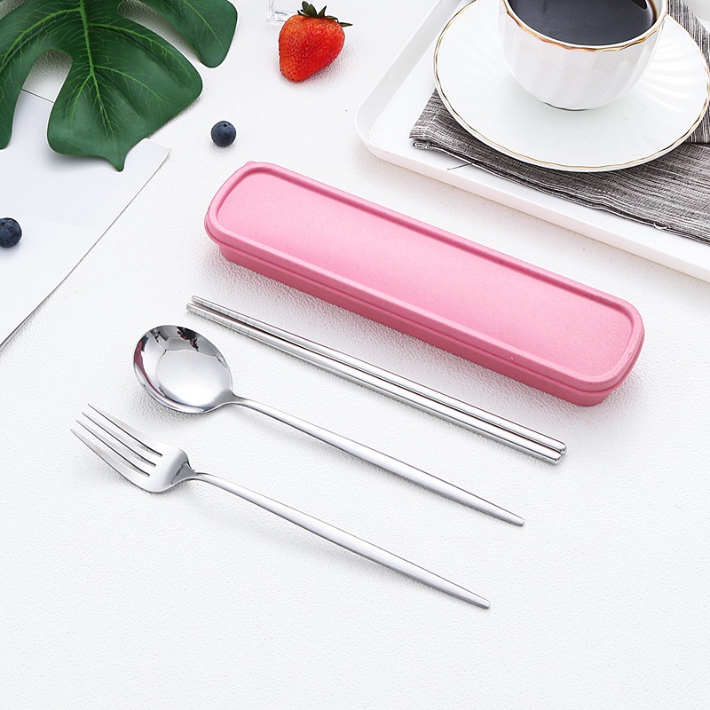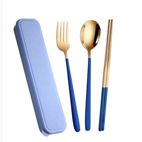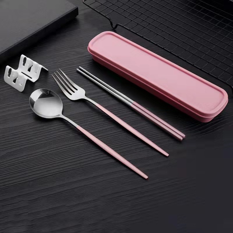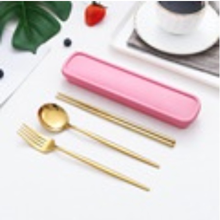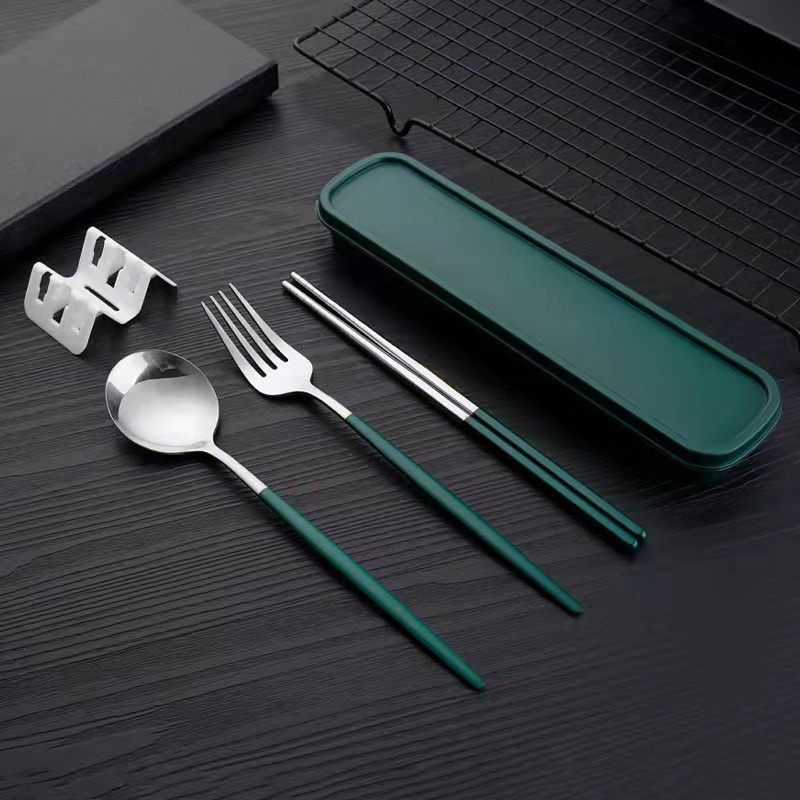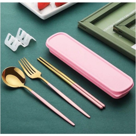 🥝กีวีน่ารัก🥝 ชุดช้อนส้อมตะเกียบ ช้อนส้อมพกพา ช้อนส้อมสแตนเลส สไตล์เกาหลี