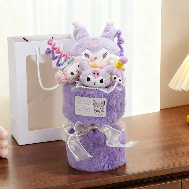 ช่อดอกไม้ตุ๊กตา เย็บร้อย Stitch ถุงของขวัญ + การ์ดอวยพร ตุ๊กตาช่อดอกไม้ น่ารัก ของขวัญวันวาเลนไทน์