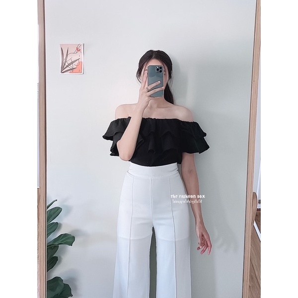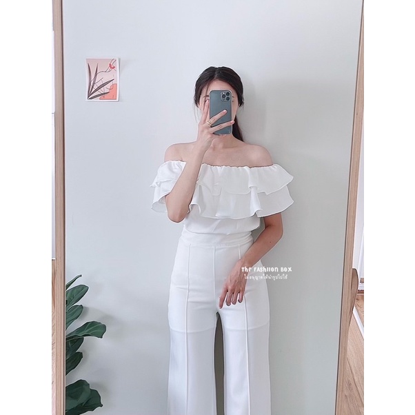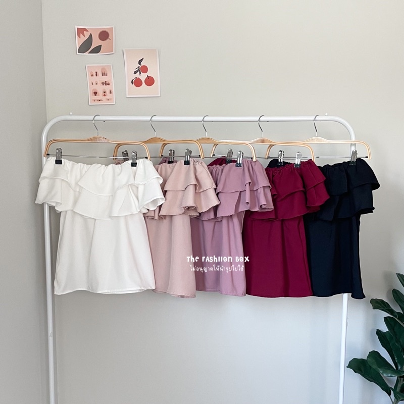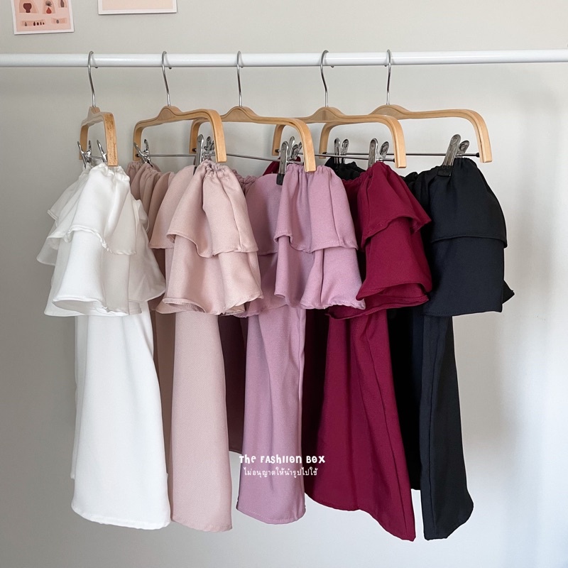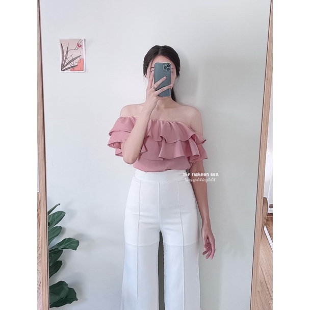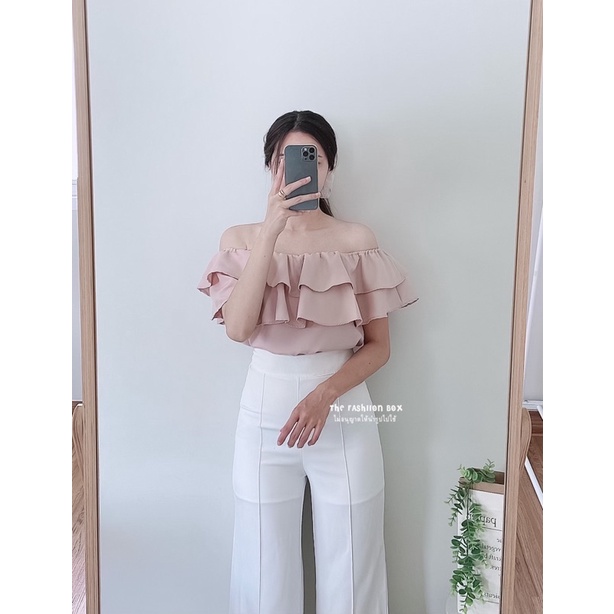 LALA TOP (9 สี พร้อมส่ง‼️)เสื้อปาดไหล่ ระบาย 2 ชั้น