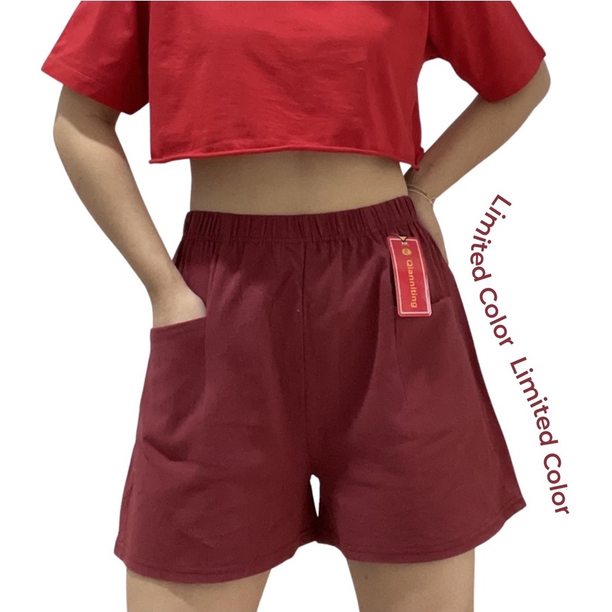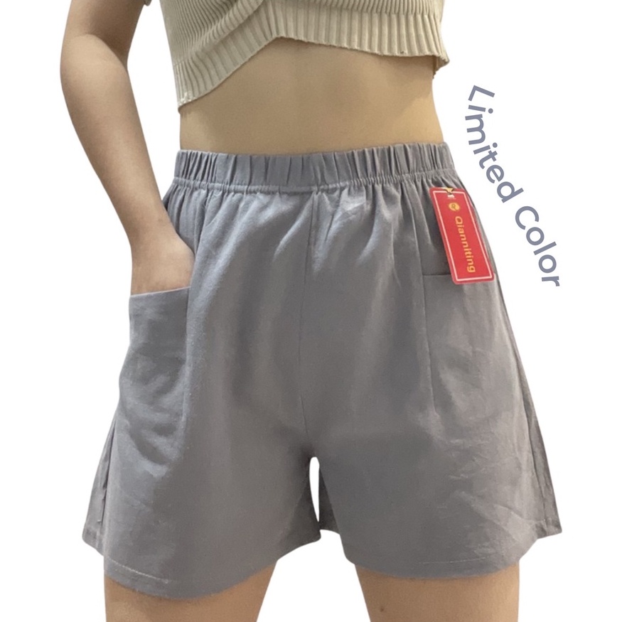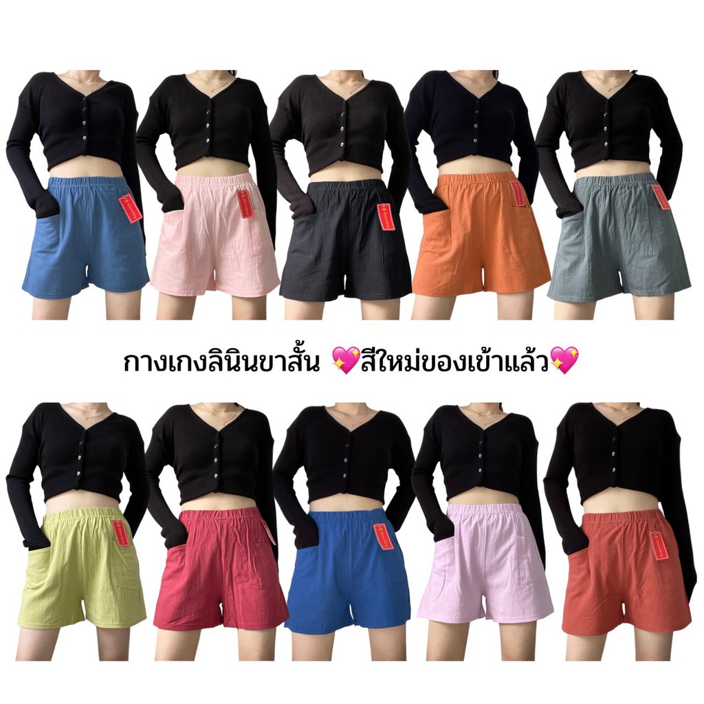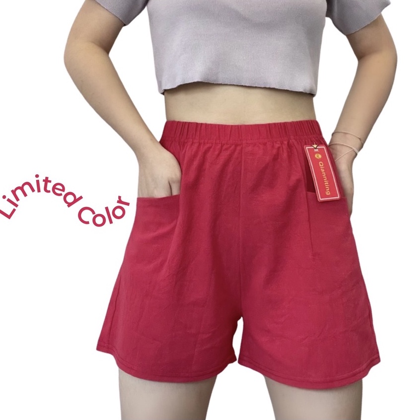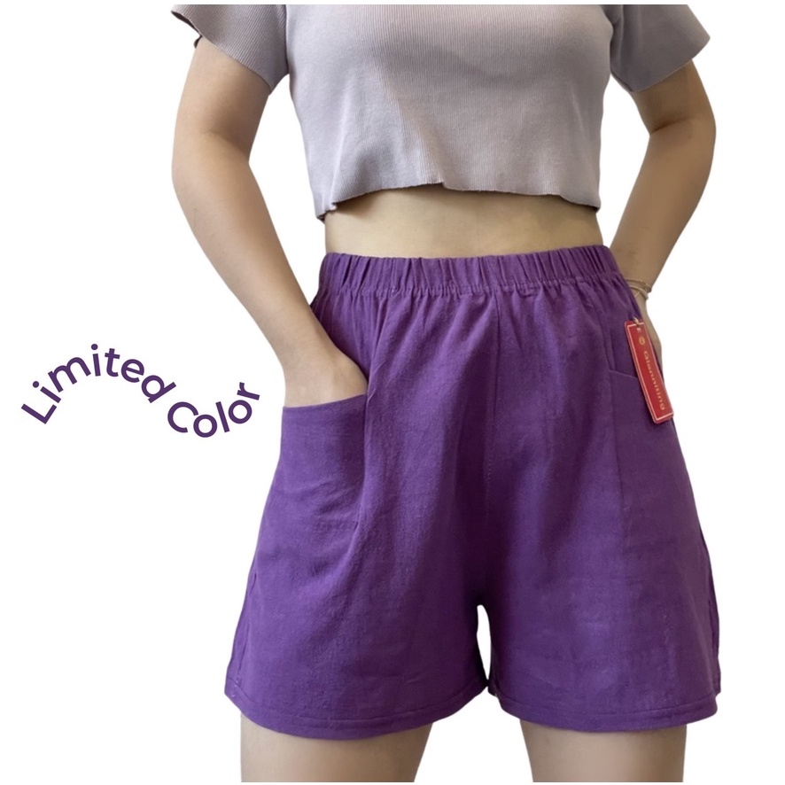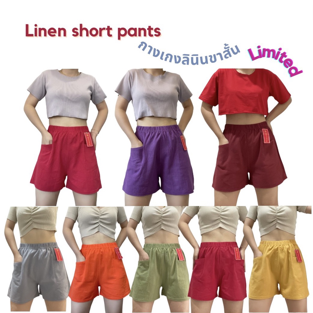 กางเกงขาสั้นผู้หญิง ผ้าฝ้ายผสมลินิน กางเกงขาสั้นกระเป๋าหน้า2ข้าง💕
