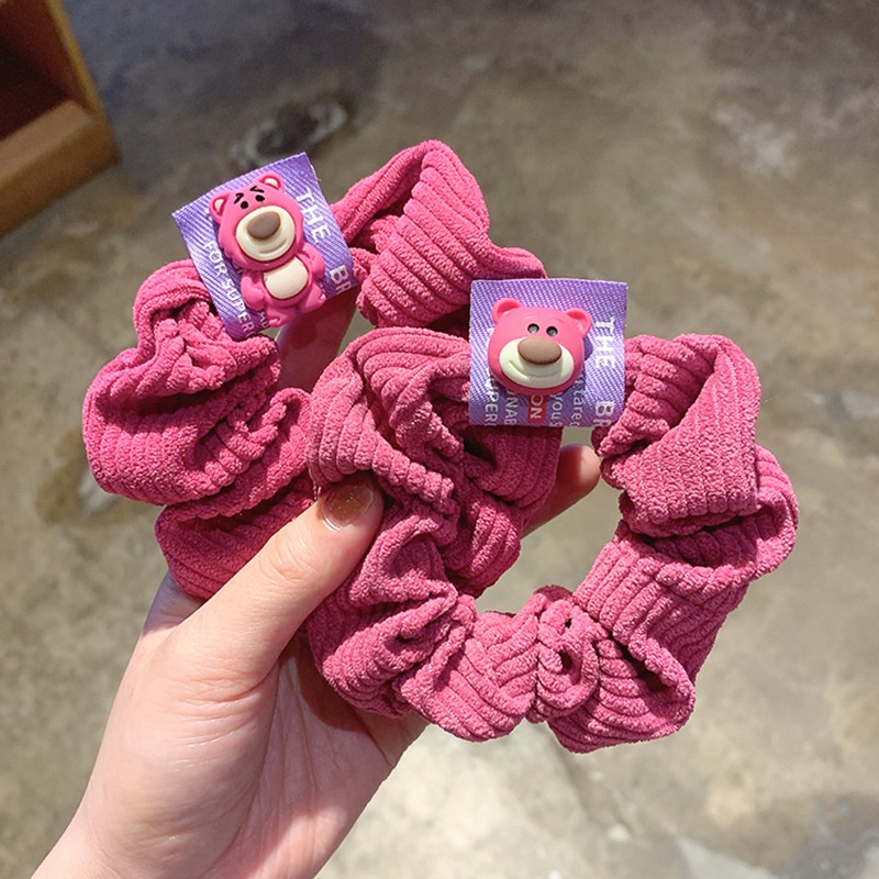 ยางมัดผมหางม้า แบบยืดหยุ่น ลายหมีสตรอเบอร์รี่ สไตล์เกาหลี สําหรับผู้หญิง