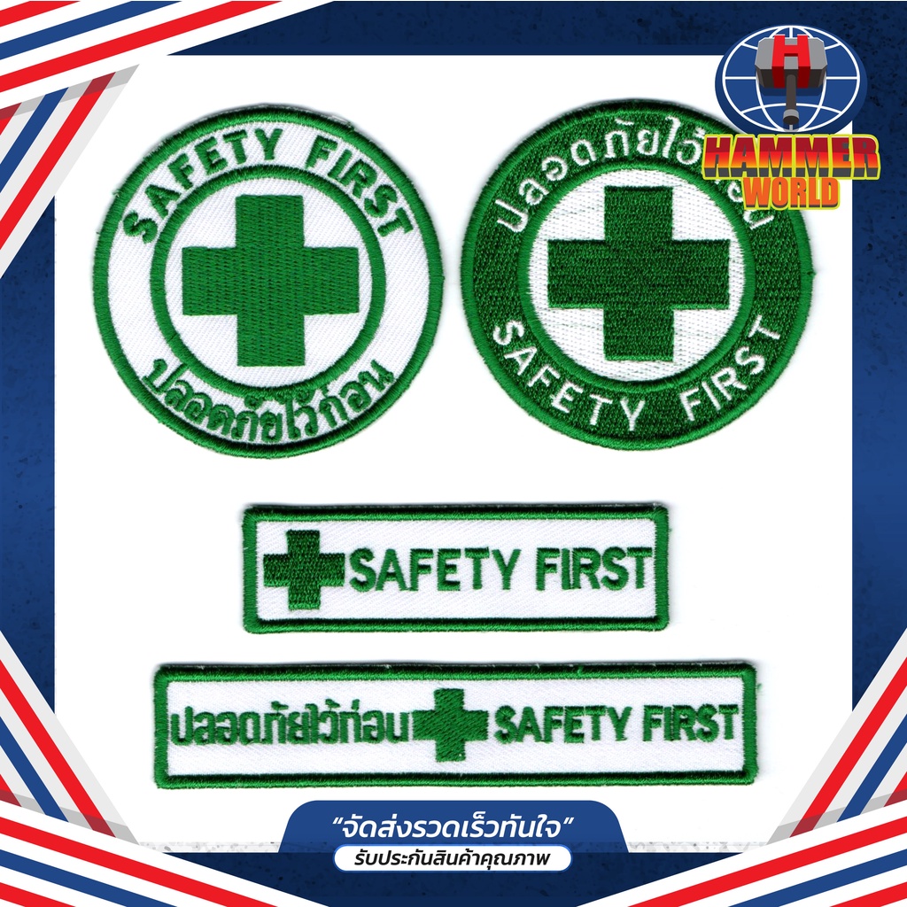 อาร์มปัก Safety First เครื่องหมายเย็บติด ตัวรีดเสื้อเซฟตี้ ปลอดภัยไว้ก่อน