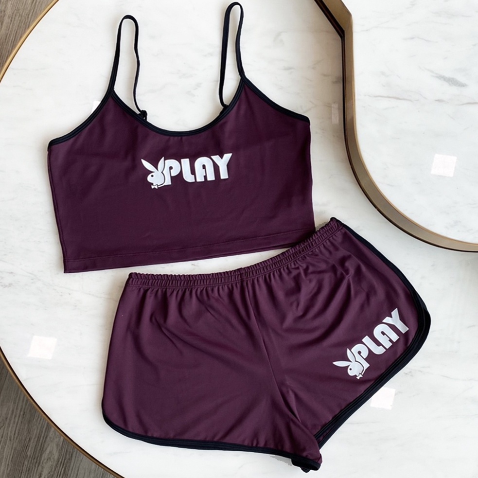 Playboy Intimates ชุดนอนสายเดี่ยว/กางเกงขาสั้นเพลบอยสกรีนลายหัวกระต่าย แยกชิ้น สีม่วง