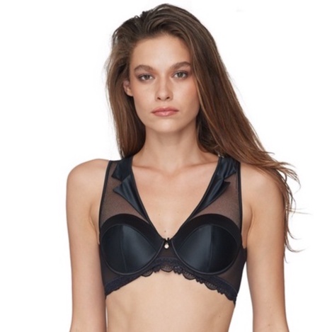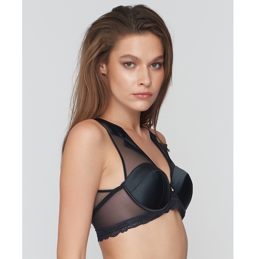 KYRA Justina Demi-Bra Black บราเลทผ้าซาตินตัดต่อผ้าตาข่าย