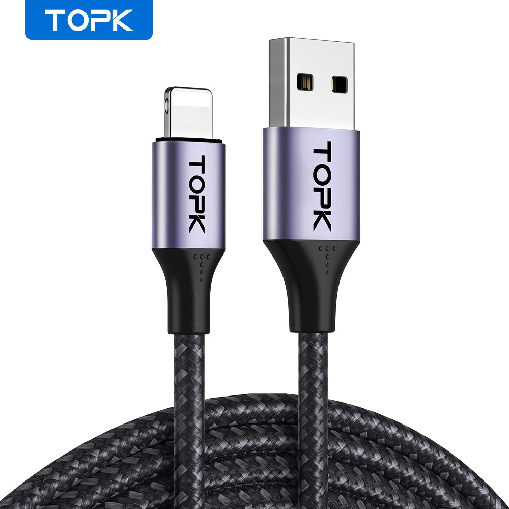TOPK AN10 สายชาร์จ Micro USB Type C ไนลอนถัก คุณภาพสูง สำหรับ iPhone Sumsung Huawei Xiaomi