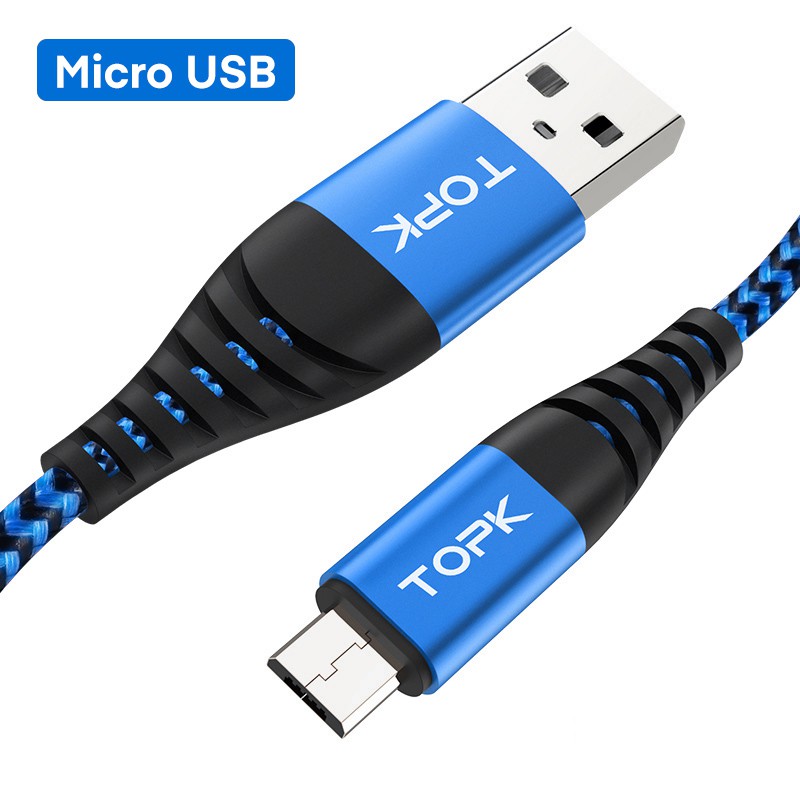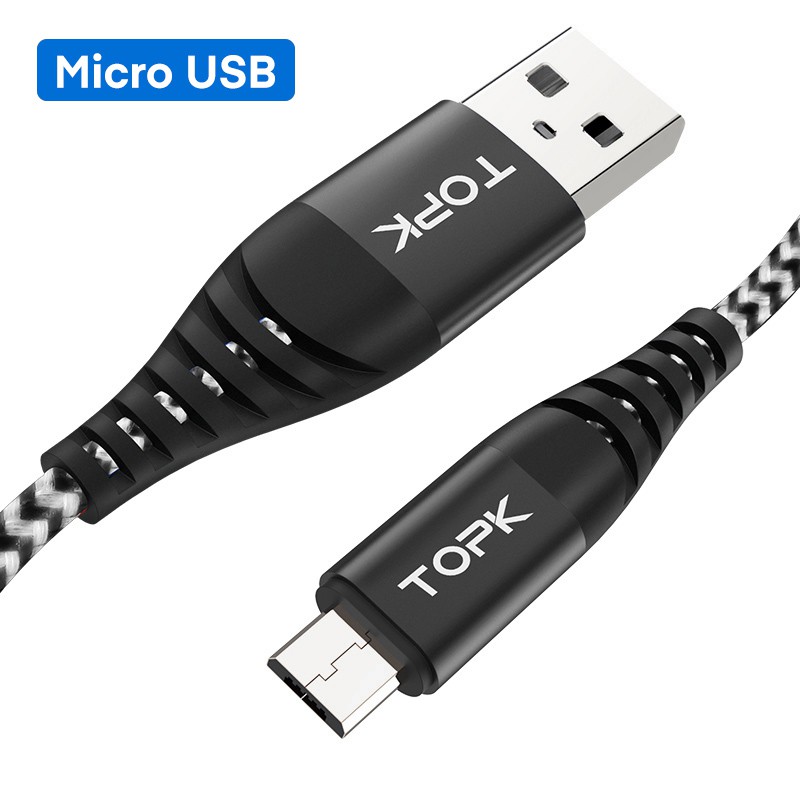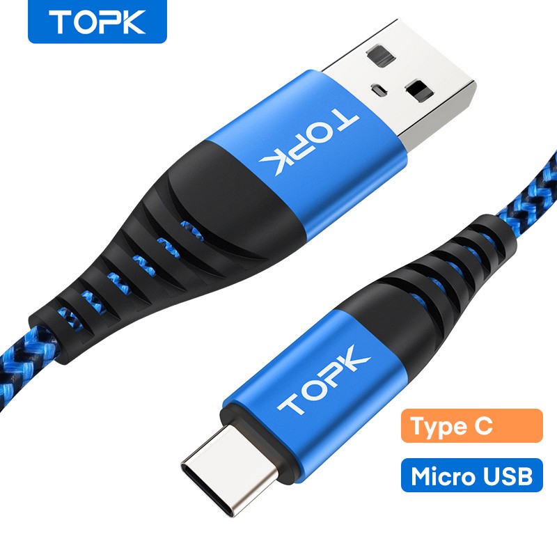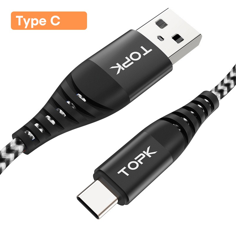 TOPK AN24 สายชาร์จ สายเชื่อมต่อข้อมูล 3A Micro USB Type C แบบไนลอน สำหรับ เสียวหมี่ ซัมซุง