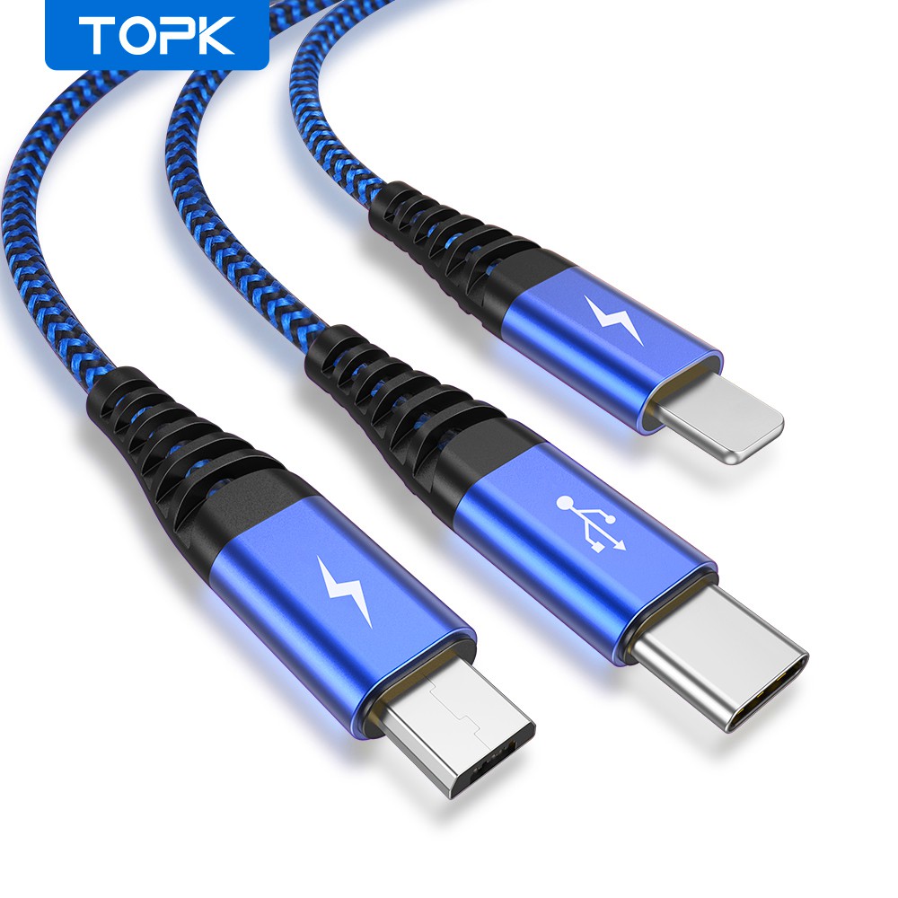 TOPK AN24-3 สายเคเบิล 3 IN 1 Micro USB Type C สําหรับ ไอโฟน ซัมซุง เสียวหมี่