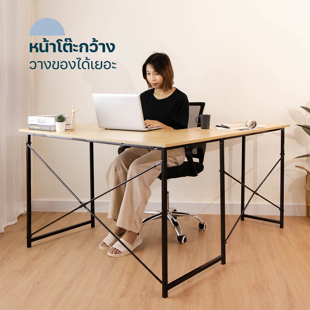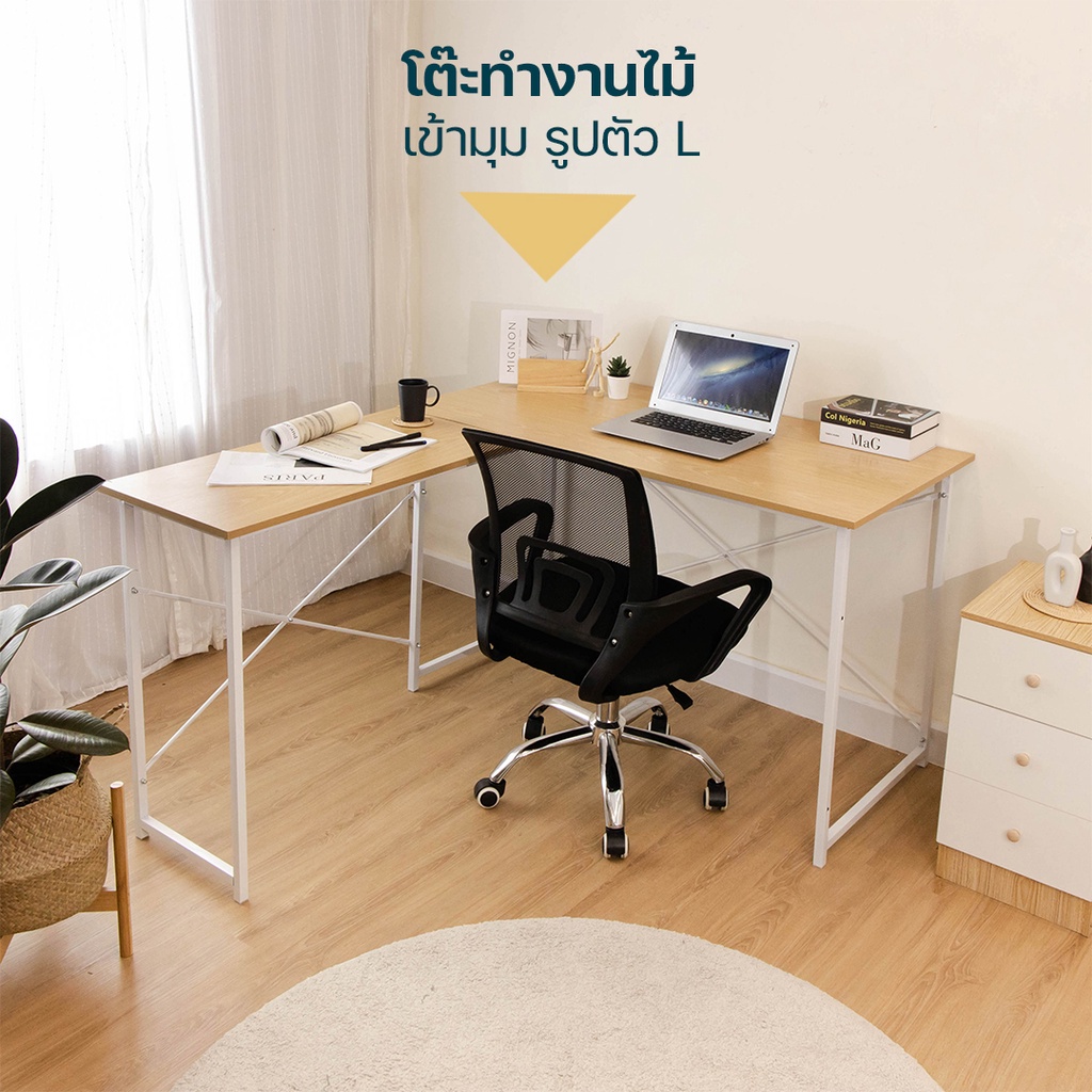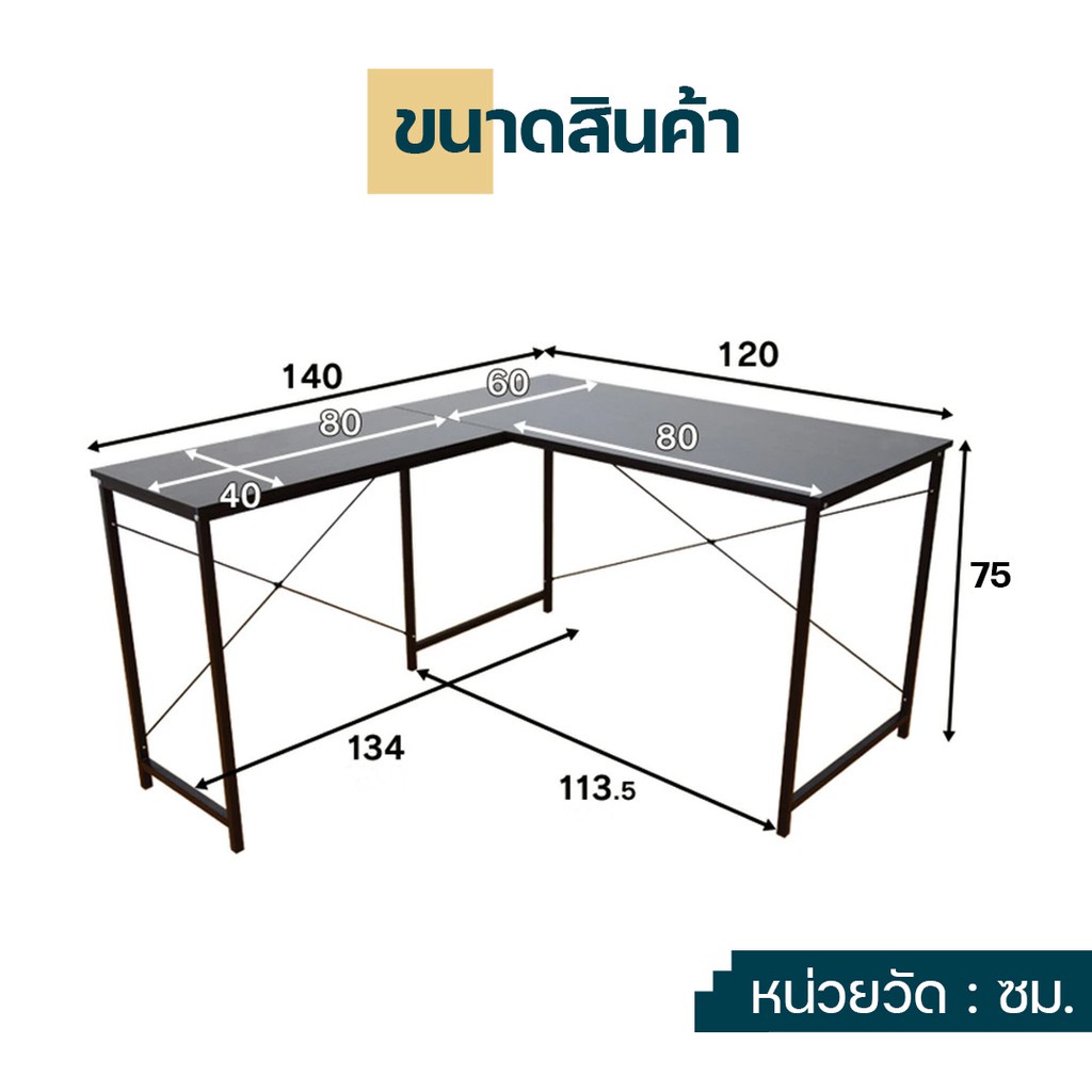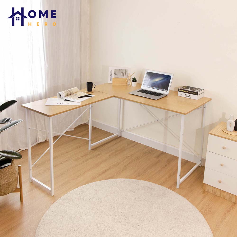HomeHero โต๊ะทำงานไม้ โต๊ะเข้ามุม รูปตัว Lโครงเหล็ก 140x120x75cm โต๊ะคอม โต๊ะไม้ โต๊ะทำงาน