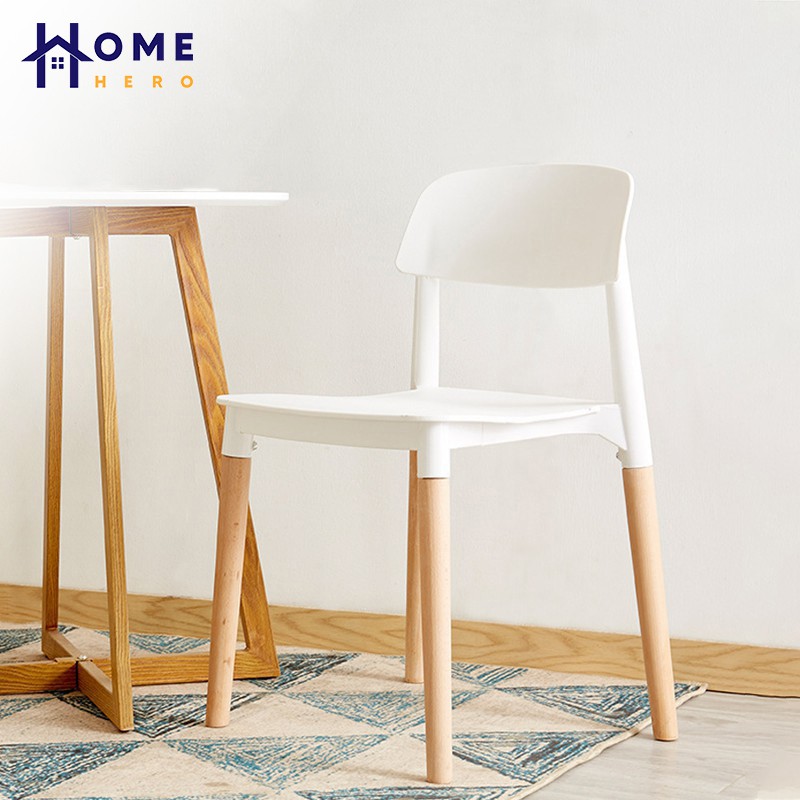 HomeHero เก้าอี้มินิมอล ขาไม้สีบีช 43x45x76cm เก้าอี้กินข้าว เก้าอี้ทำงาน เก้าอี้