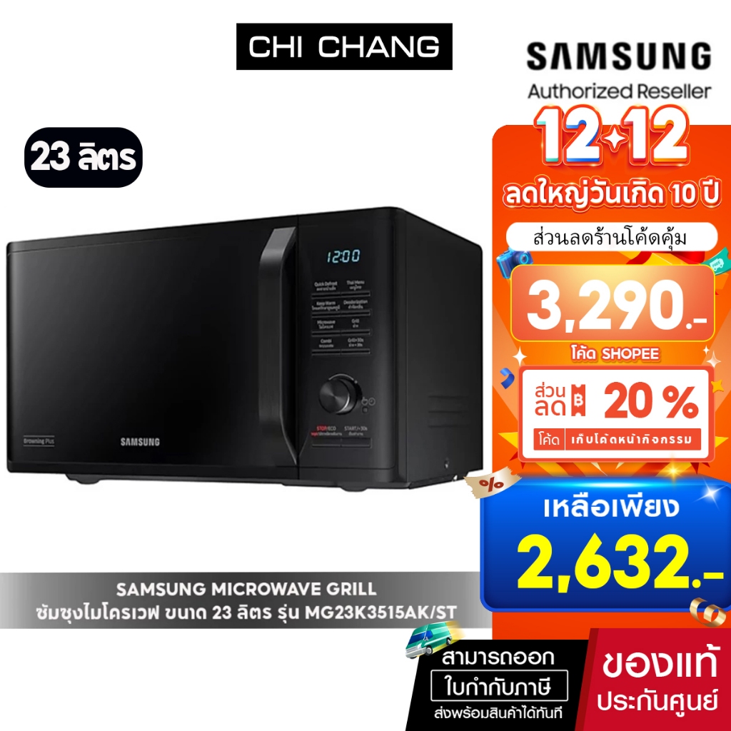 [ราคาพิเศษ] SAMSUNG MICROWAVE GRILL เตาอบไมโครเวฟ อุ่น/อบ/ย่าง รุ่น MG23K3515AK/ST สีดำ ขนาด 23 ลิตร