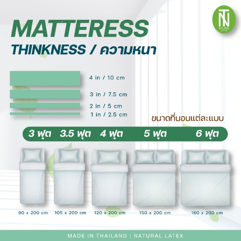 [โปรดเลือกขนส่งให้ถูกต้อง] natural ที่นอนยางพาราแท้ 100% [รุ่นเกรดส่งออก] เพื่อสุขภาพ