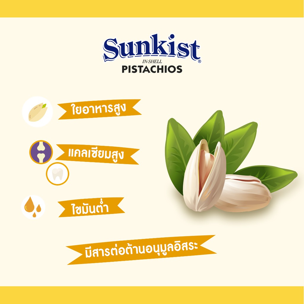 ซันคิสท์ พิสทาชิโออบเกลือ 150 ก. Sunkist Dry Roasted & Salted Pistachios 150 g.