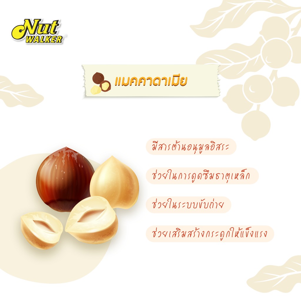 นัท วอล์คเกอร์ แมคคาเดเมียอบเกลือ 300 ก. Nut walker Dry Roasted Salted Macadamias 300 g.
