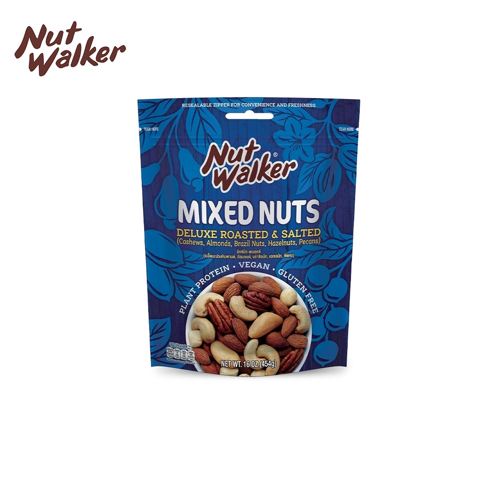 นัท วอล์คเกอร์ มิกซ์นัทเดอลุกซ์ 454 ก. Nut walker Deluxe Roasted & Salted Mixed Nuts 454 g.