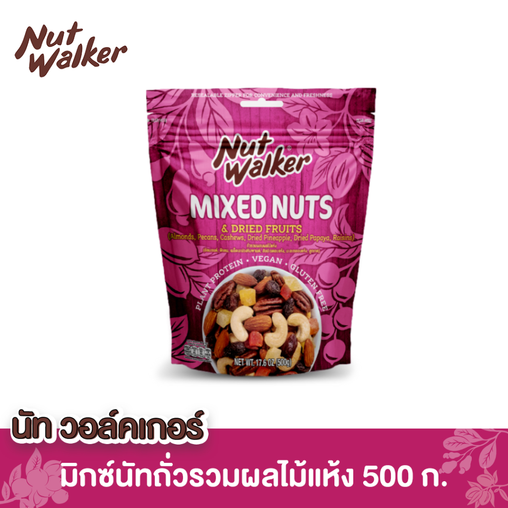 นัท วอล์คเกอร์ ถั่วรวมผสมผลไม้แห้ง 500 ก. Nut Walker MIXED NUTS & DRIED FRUITS 500 g.