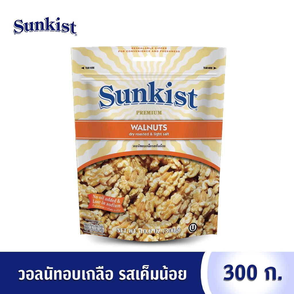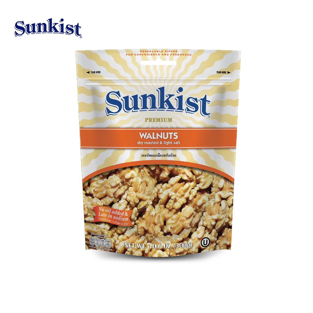 ซันคิสท์ วอลนัทอบเกลือรสเค็มน้อย 300 ก. Sunkist Premium Walnuts Dry Roasted & Light Salted 300 g.
