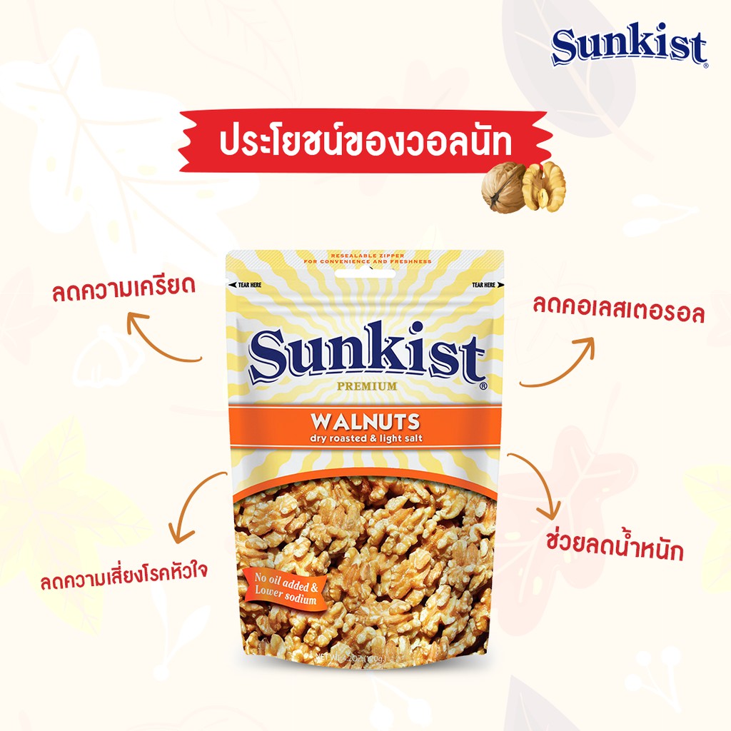 ซันคิสท์ วอลนัทอบเกลือ รสเค็มน้อย 120 ก. Sunkist Dry roasted & Light salt Walnuts 120 g.