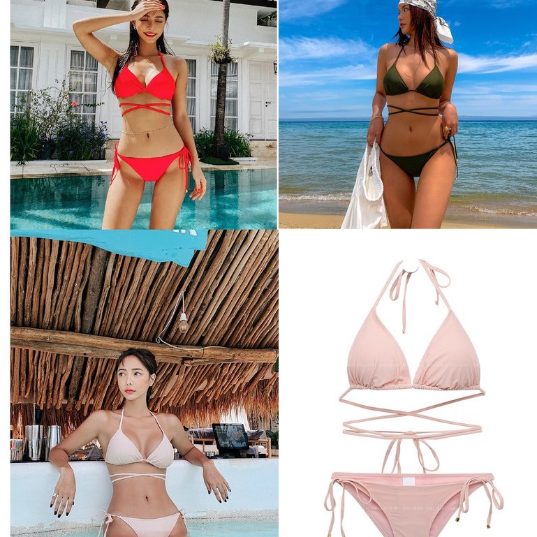 👙4สี👙พร้อมส่งชุดว่ายน้ำแฟชั่นผู้หญิงบิกินี 2 ชิ้น น่ารักมากๆ 2705# FREE SIZE [44กก~66กก]