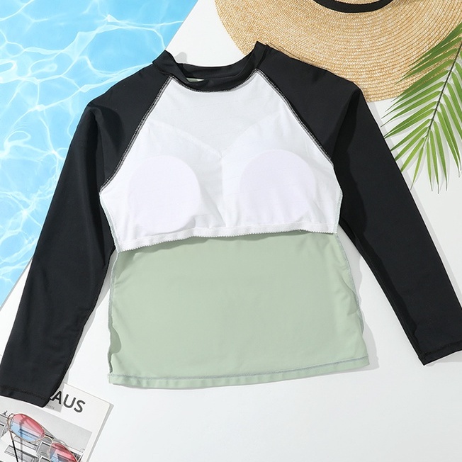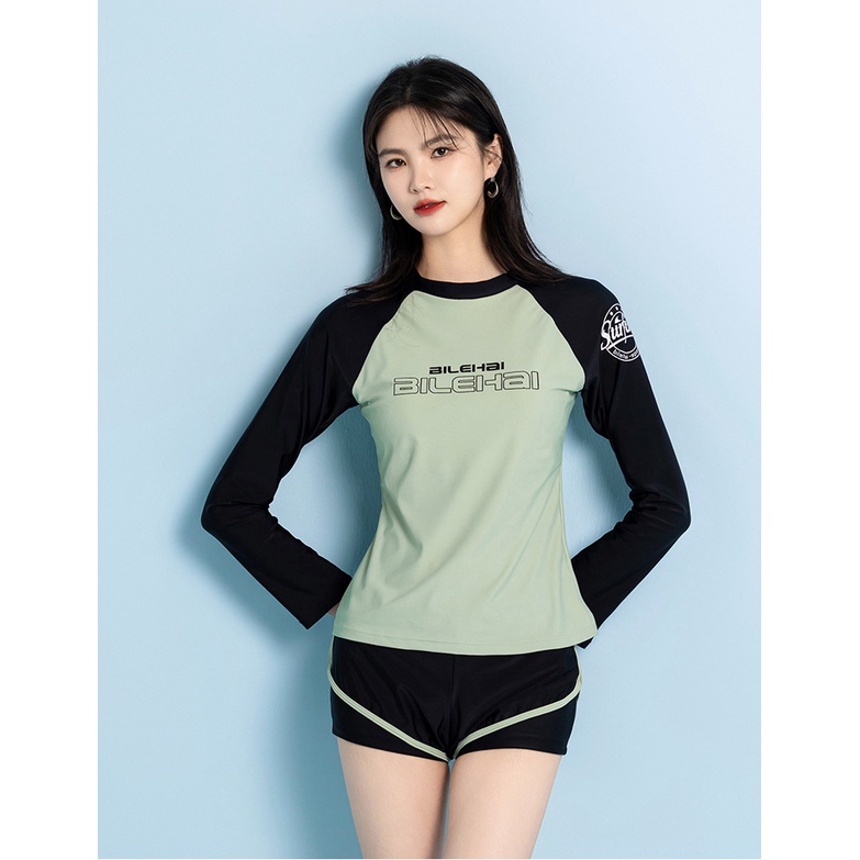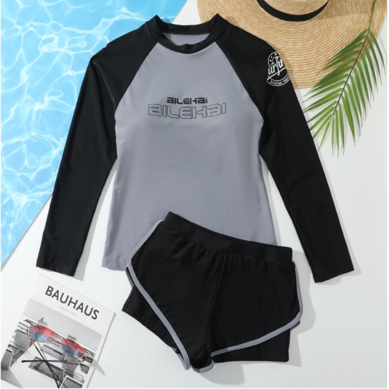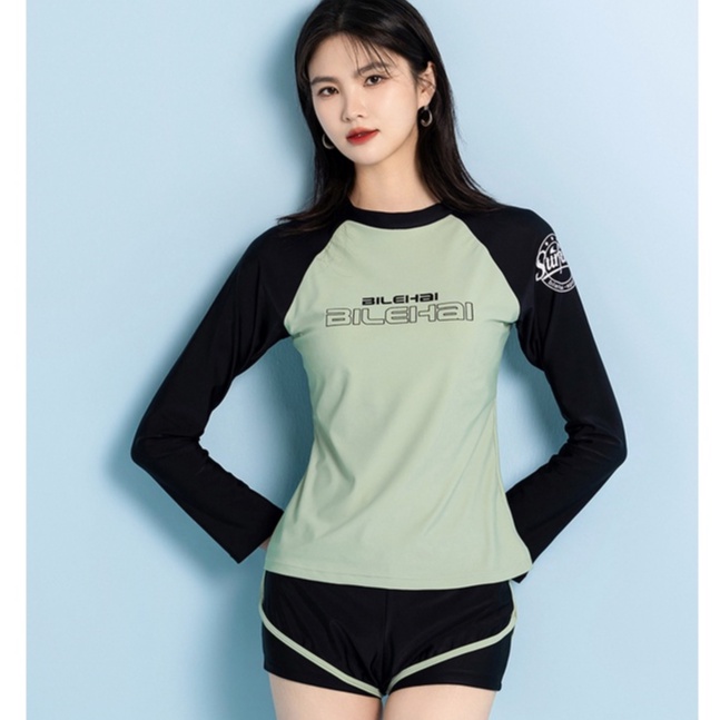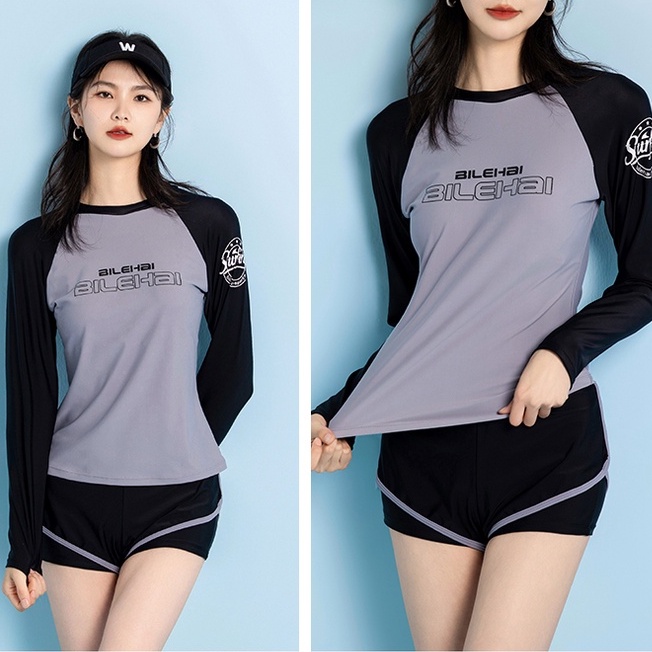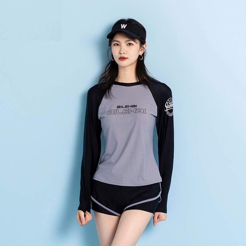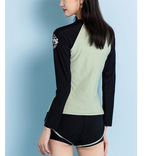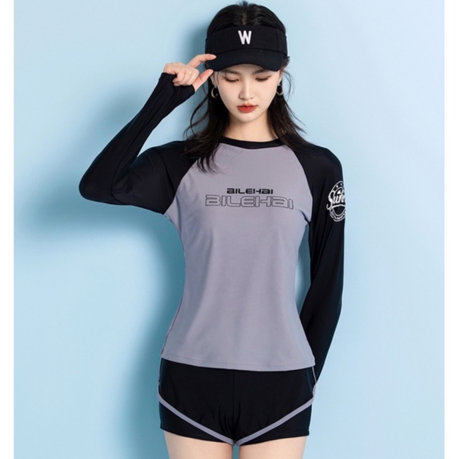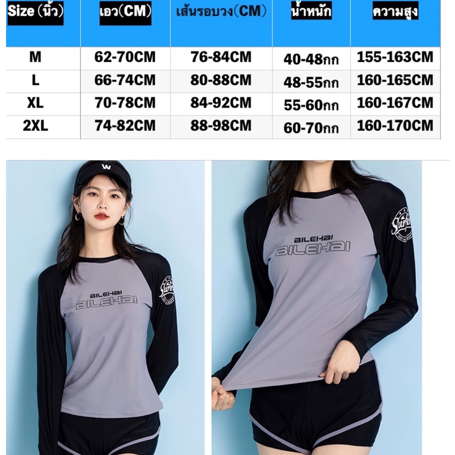 ชุดว่ายน้ำผู้หญิงแขนยาว 2สี กางเกงสปอร์ต2ชั้น UPF50+,UV , 19031# มีฟองและซับใน