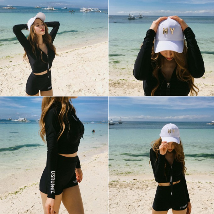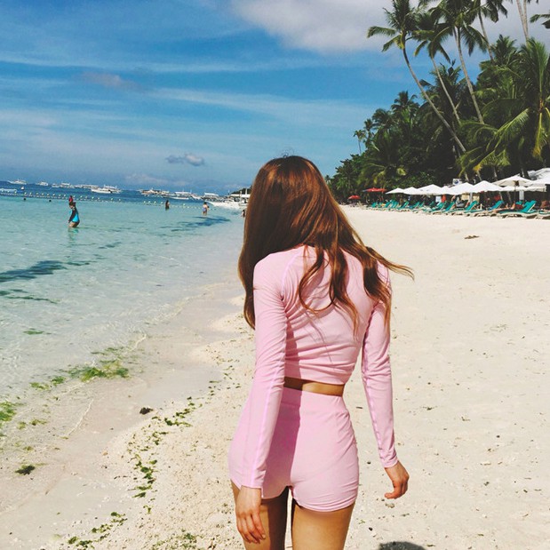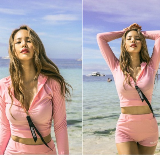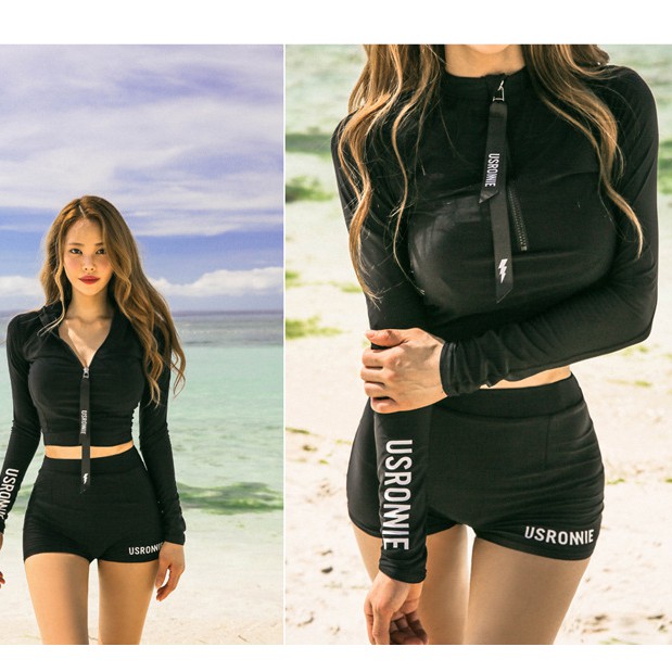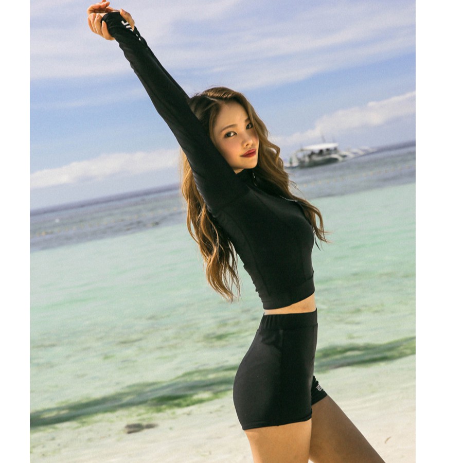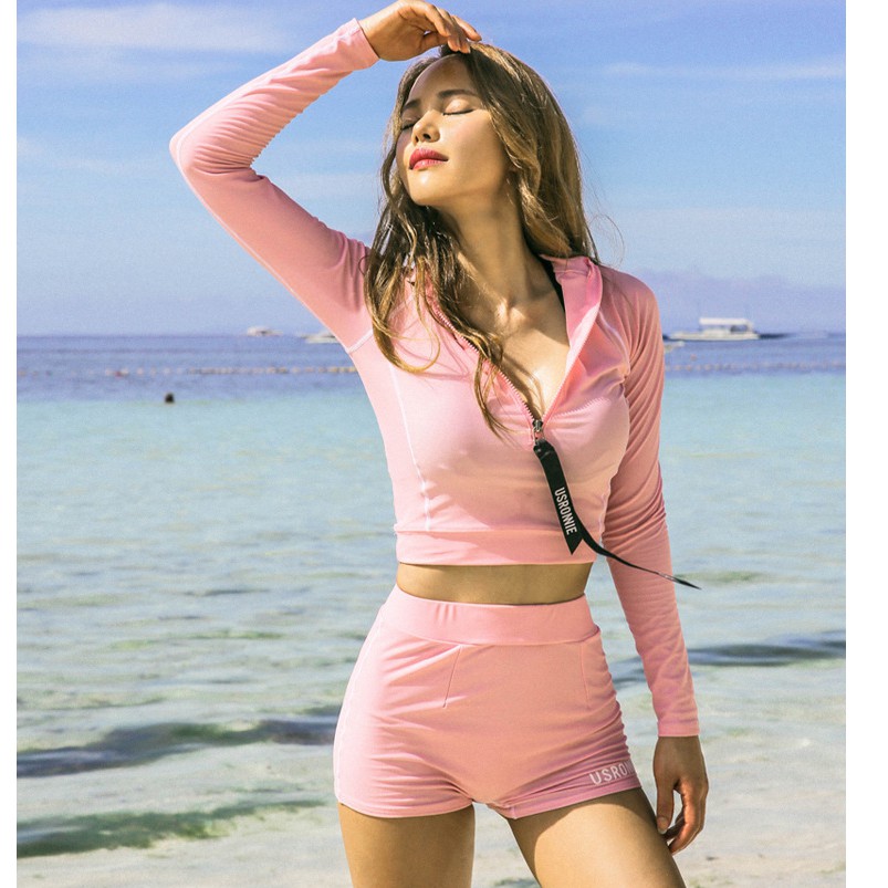 ชุดว่ายน้ำผู้หญิง แขนยาว กันแดด กัน UV 2สี มีฟองและซับใน 1808#