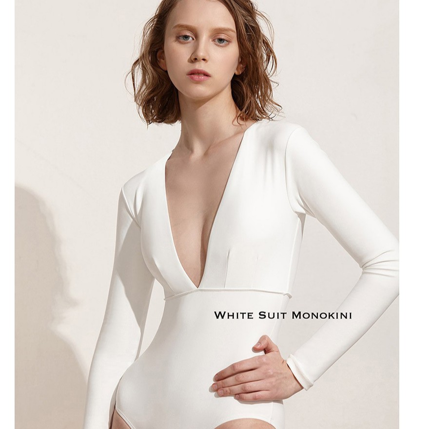 ชุดว่ายน้ําวันพีชแขนยาวเอวสูงสําหรับผู้หญิง 2678# มีฟองและซับใน