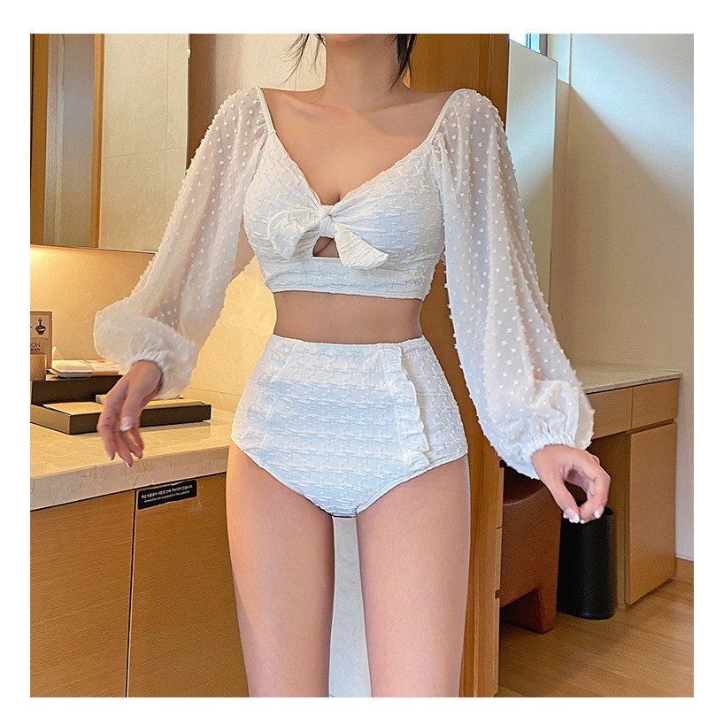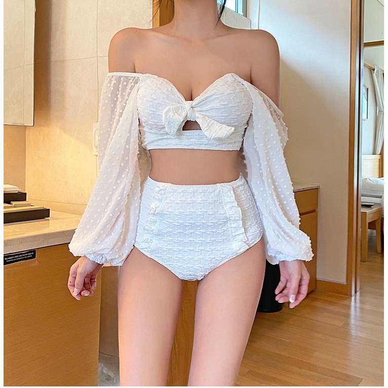 ชุดว่ายน้ำผู้หญิง ดว่ายน้ำบิกินี 2ชิ้น สไตล์เกาหลี ผ้าเนื้อดี 2672#มีฟองน้ำ