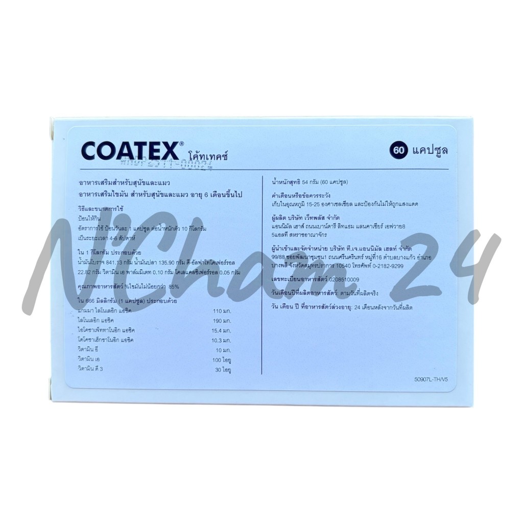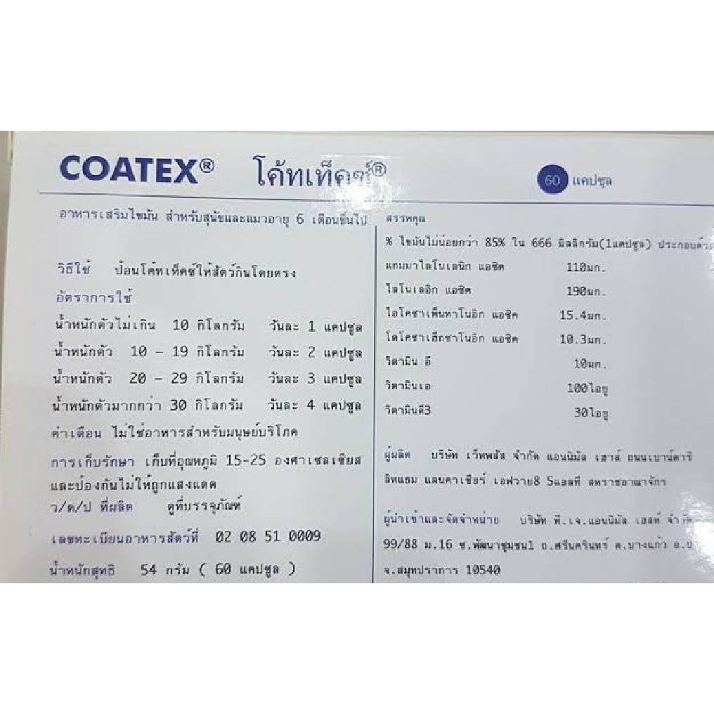 Coatex แบ่งขาย 15 caps (หมดอายุ01/2027) อาหารเสริม บำรุงขนและผิว แบบเม็ด สำหรับสุนัข