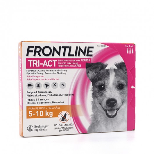 Frontline Tri-Act บรรจุ 3 หลอด ยาหยดป้องกันและกำจัดยุง เห็บ หมัด และแมงวันคอก สำหรับสุนัข 1 กล่อง