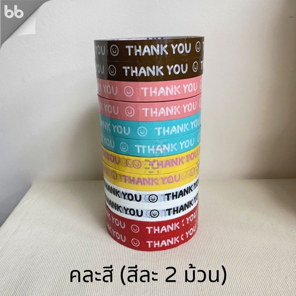 เทปยกโหล 12ม้วน Thank you 15 มม. 45 หลา 6 สี ติดกล่องขนม เบเกอร์รี่ เทป For u OPP tape ปิดกล่อง ติดกล่อง