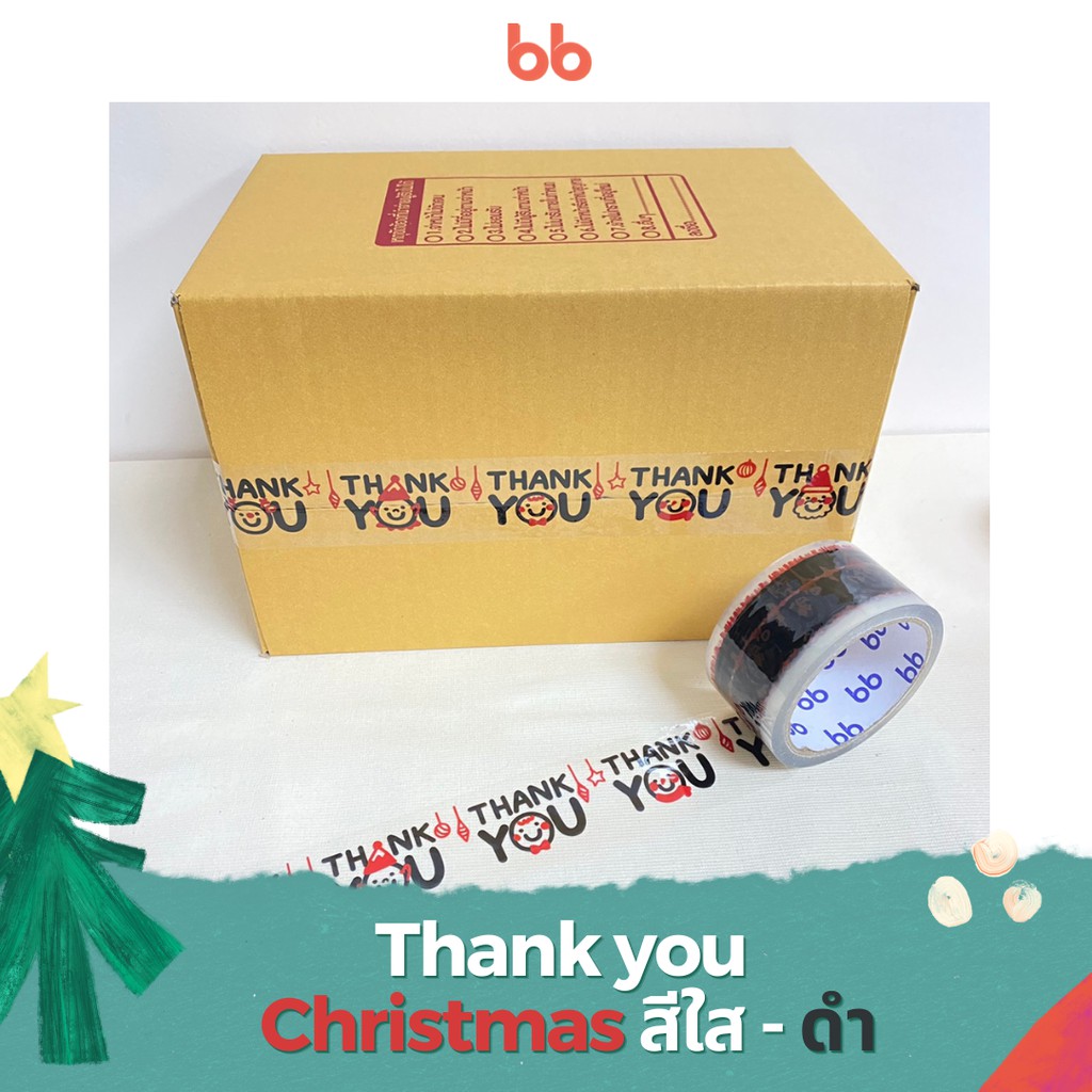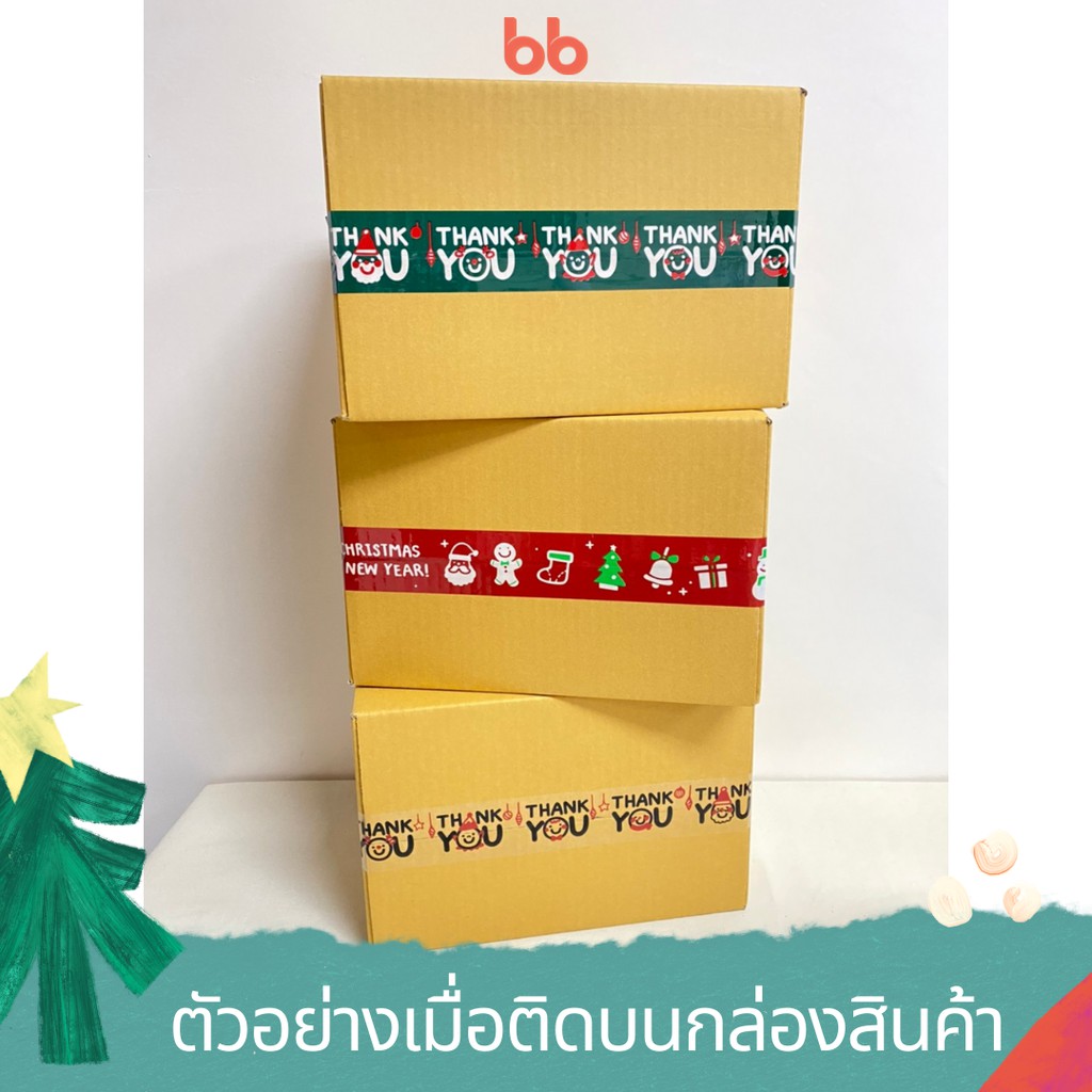 เทป Merry Christmas 🎄 & Happy New Year 2 นิ้ว 45 หลา (ม้วน) ลาย limited 3 สี 3 แบบ เทปลายการ์ตูน OPP ติดกล่อง