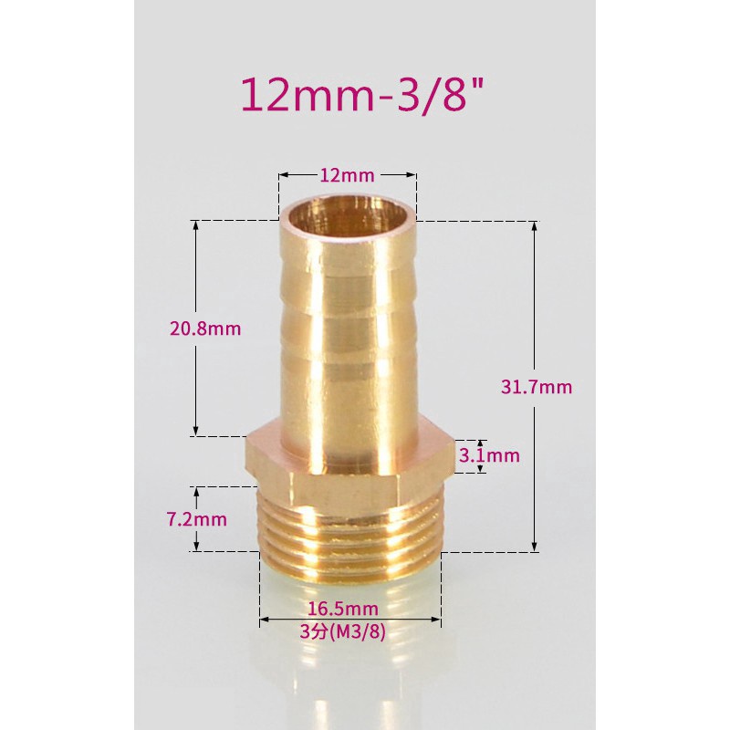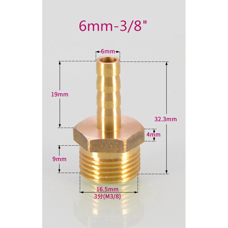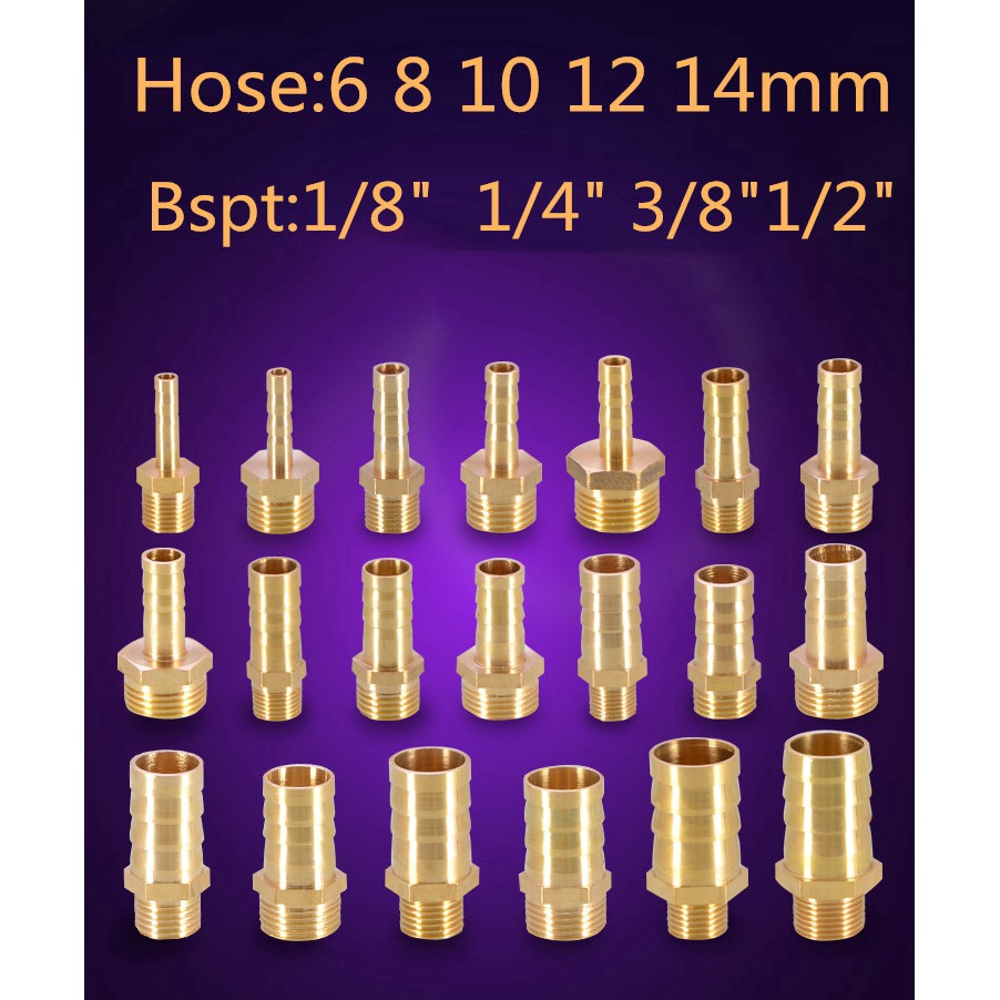 ข้อต่อท่อน้ำ ชนิดทองเหลือง ขนาด 6-14 มม. ชนิด BSP 1/8 1/4 1/2 3/8 นิ้ว