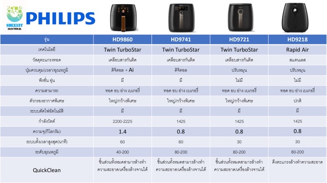 หม้อทอดไฟฟ้าไร้น้ำมันดิจิตอล Philips รุ่น HD9741 (คู่มือทำอาหารจากหม้อทอด ภาษาไทย) พร้อมส่ง