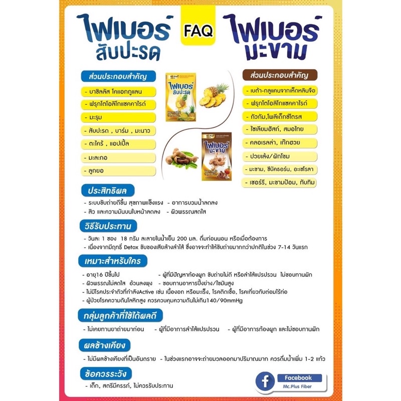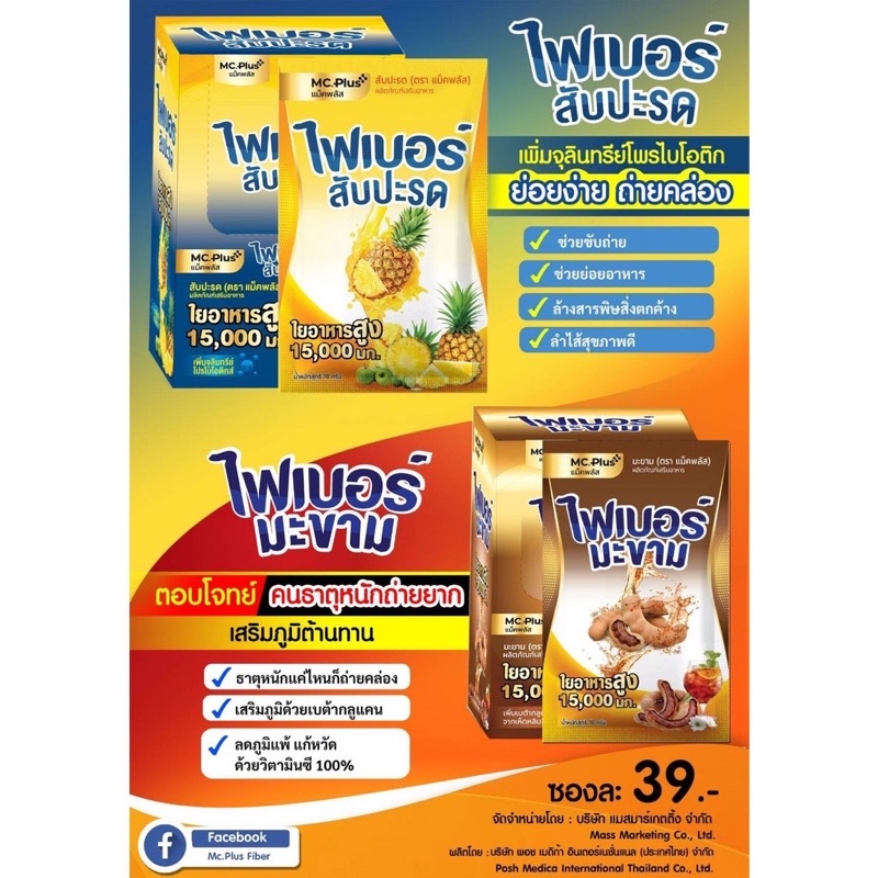 🔻ไฟเบเร์ส้ม ยกกล่อง 119บ.🔻MC Plus Fiber ไฟเบอร์มะนาว ไฟเบอร์มะขาม ไฟเบอร์สัปปะรด ไฟเบอร์ส้ม 1 กล่อง 6ซอง