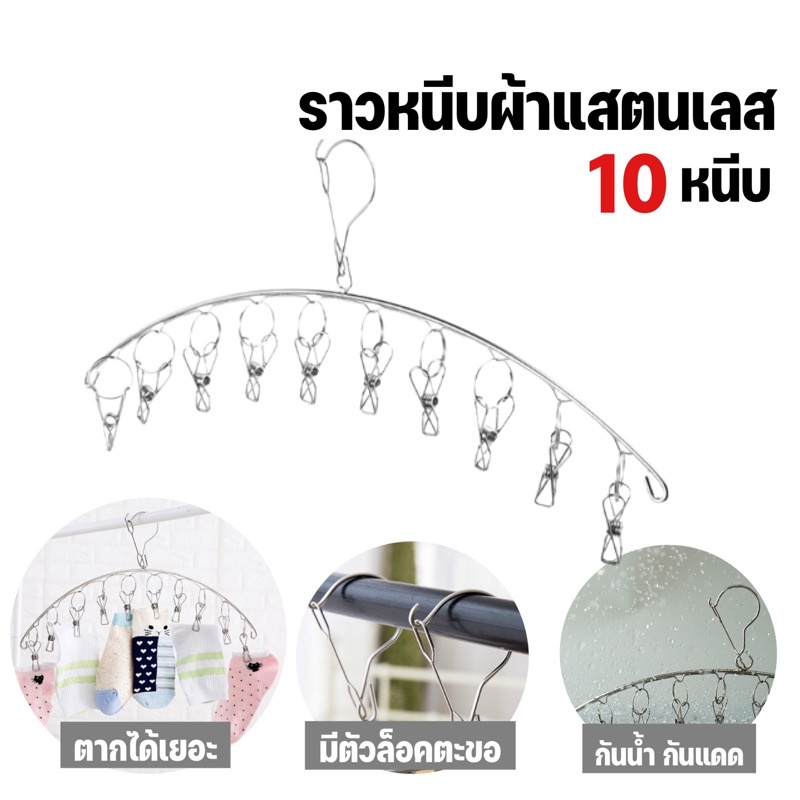 🔥ราวหนีบผ้าแสตนเลส 10 หนีบ ไม้หนีบแสตนเลส ที่ตากชุดชั้นใน ที่หนีบผ้าแสตนเลส ที่หนีบแบบไม้แขวน