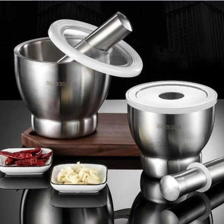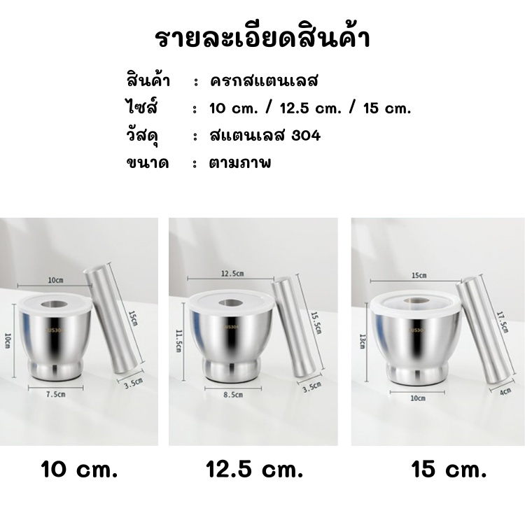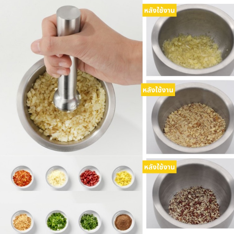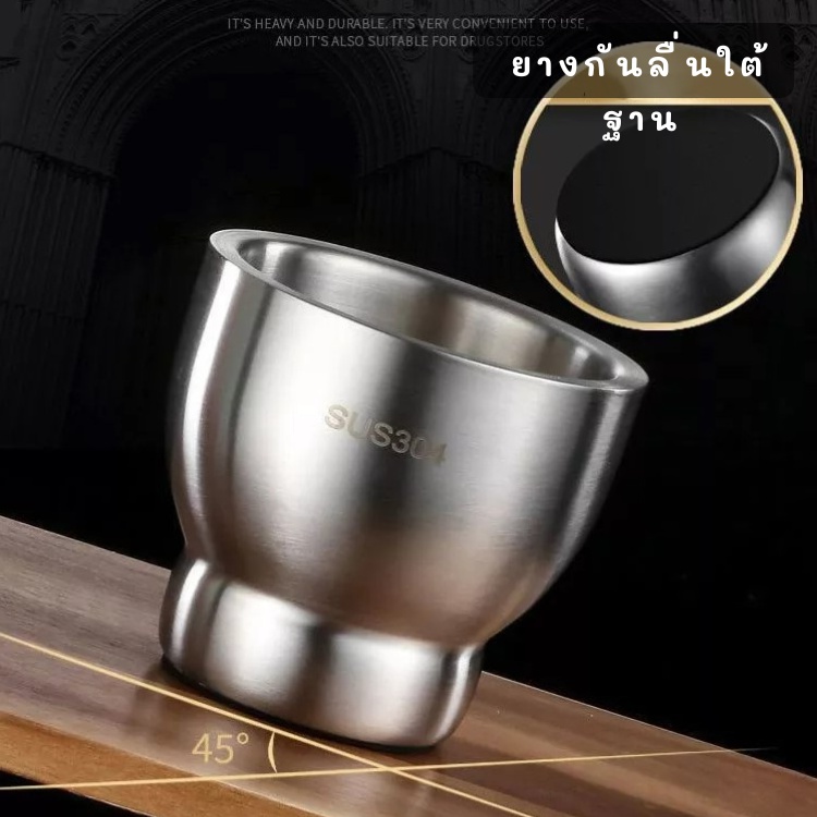 ครกสแตนเลส พร้อมฝาปิด ครก สาก ครกอย่างดี ครก ครกบดยา ครกเล็ก ตำกระเทียม พริกไทย เครื่องเทศ