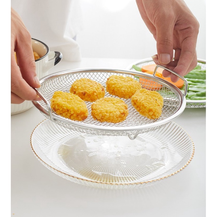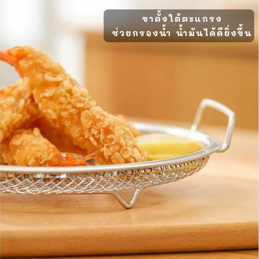 MM ตะแกรงรองของทอด สแตนเลส สไตล์ญี่ปุ่น ตะแกรงพักของทอด ตะแกรงทอด ขนาด 22 ซม.