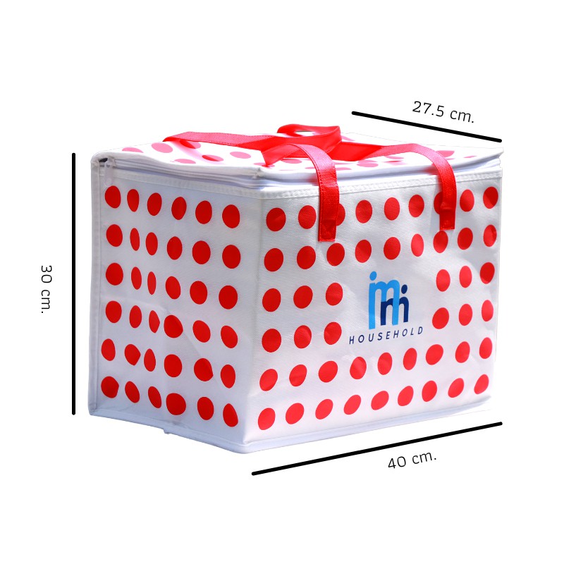 กระเป๋าเก็บความเย็น ลายจุด มีหลายขนาด กระเป๋าเก็บอุณหภูมิ ขนาดใหญ่จุของได้มาก ใส่ของสด เค้ก อาหาร กระเป๋าส่งอาหาร