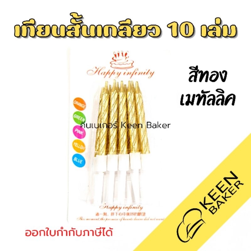 (ราคาส่ง 6 บาท) เทียนวันเกิด เทียนสั้น สีเมทัลลิค สีนีออน ลายเกลียว สูง 7 ซม.