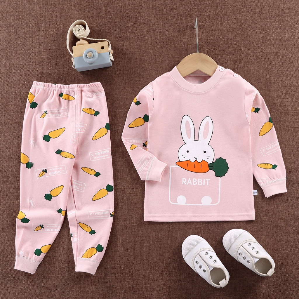 ชุดนอนเด็ก เสื้อแขนยาว+ขายาวเด็ก ชุดเซ็ท เสื้อผ้าเด็ก ผ้าcotton size 73-100 CXT08