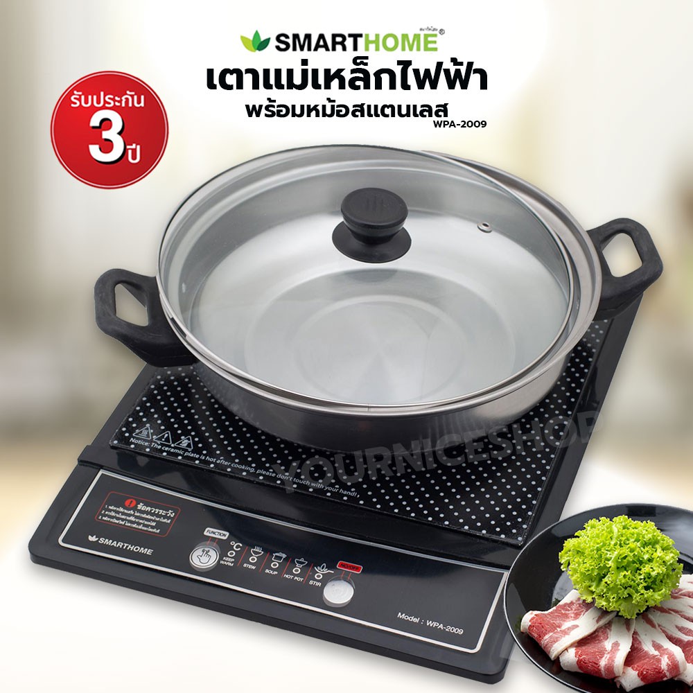 Smarthome เตาแม่เหล็กไฟฟ้าพร้อมหม้อสแตนเลส รุ่น WPA-2009/IN-1300