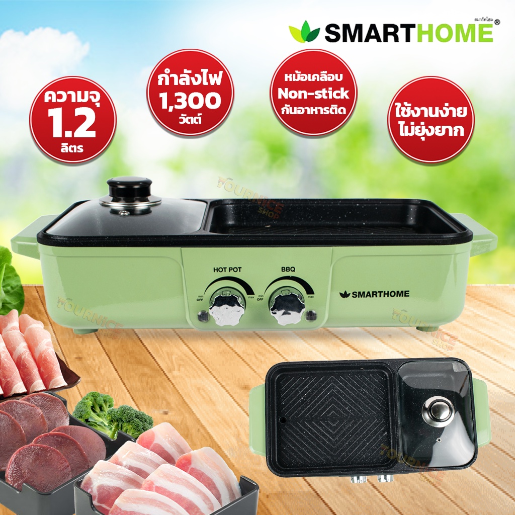 SMARTHOME เตาปิ้งย่างเอนกประสงค์พร้อมหม้อสุกี้ รุ่น SM-EG1301 (คละสี)