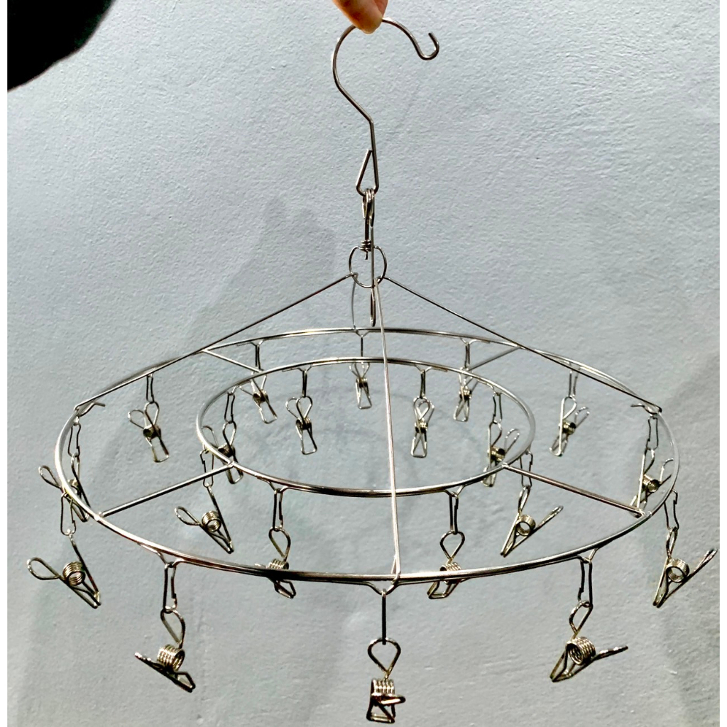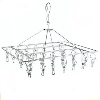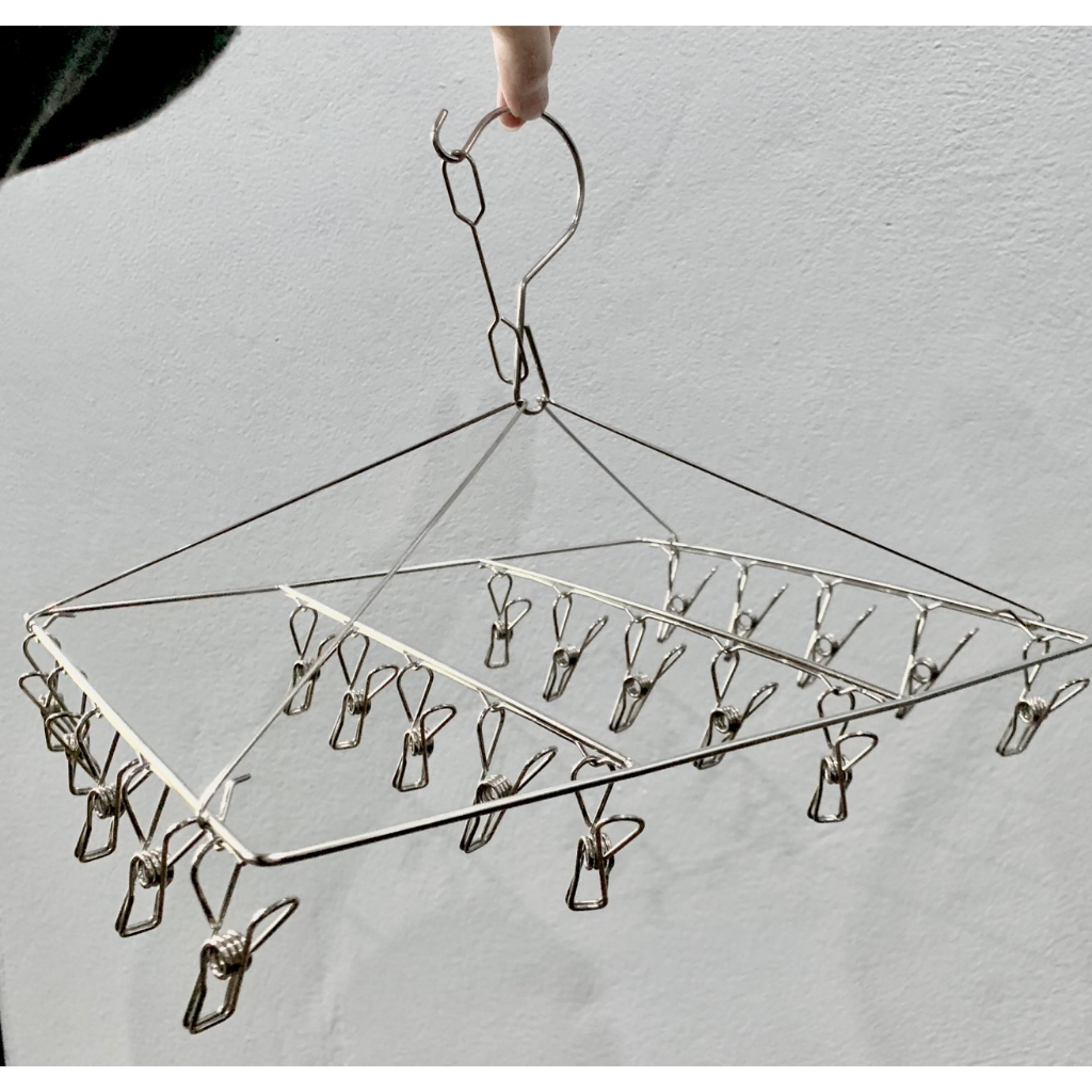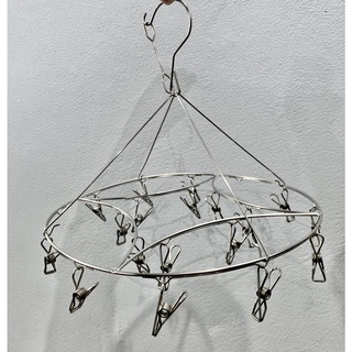 ที่หนีบผ้า ราวหนีบผ้าสแตนเลส แบบเหลี่ยม แบบกลม 20 ตัวหนีบ #D010