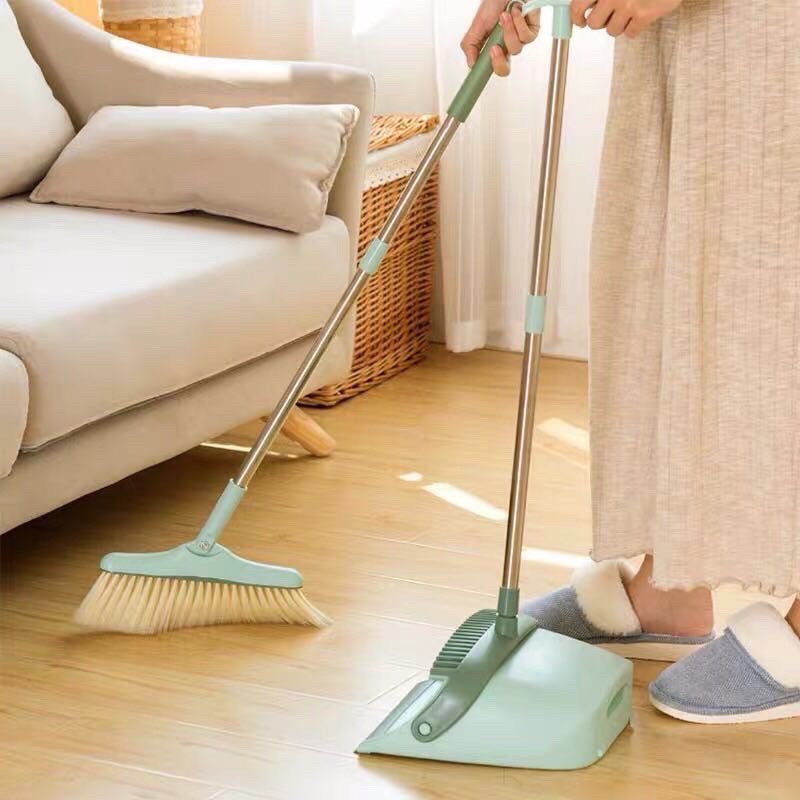 ชุดไม้กวาด หมุนได้ มีแปรงในตัวพร้อมที่ตักขยะ ไม้กวาดพร้อมที่โกย#F016