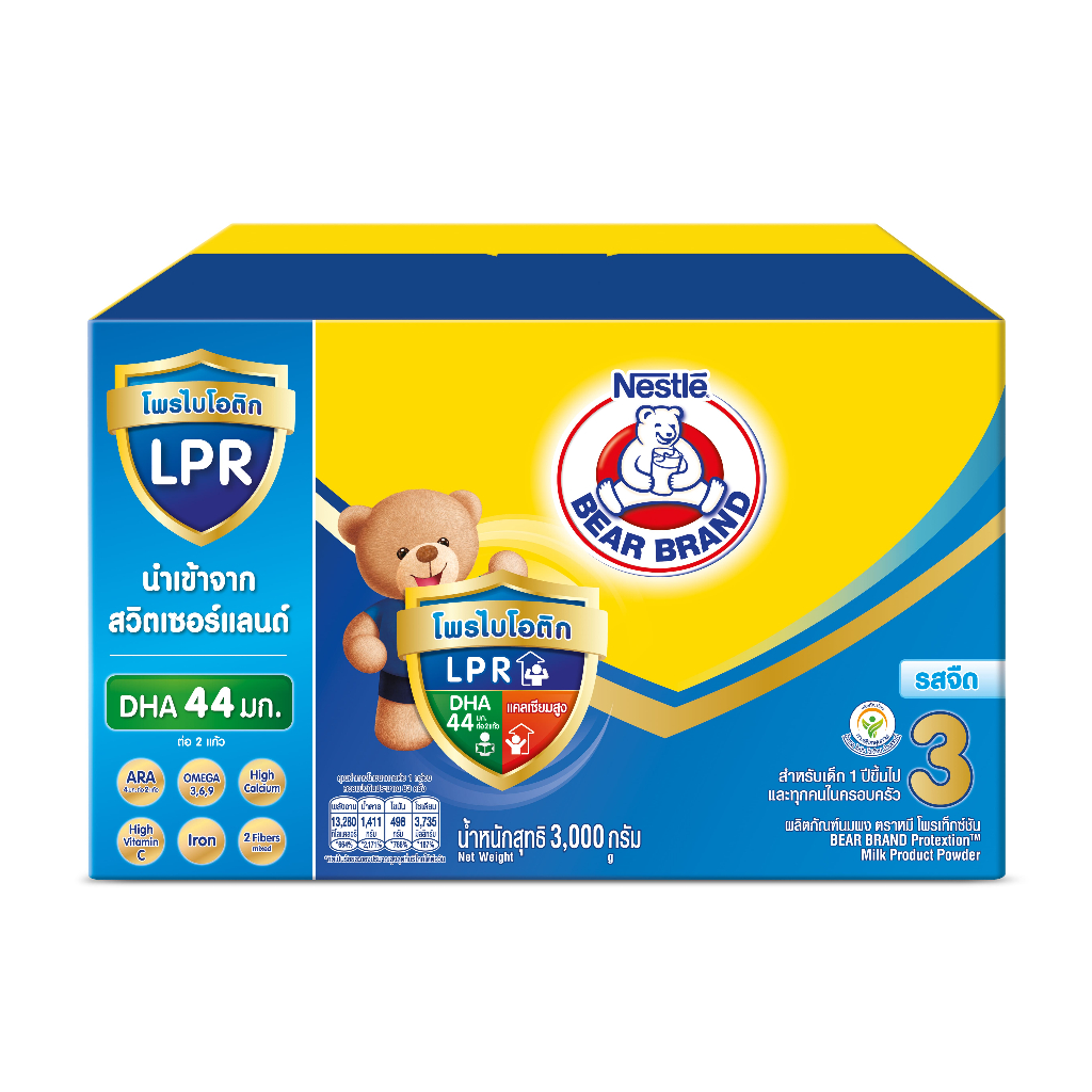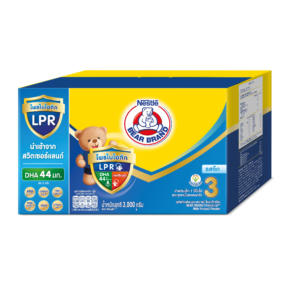 [นมผง] BEAR BRAND นมผง ตราหมี โพรเท็กชั่นสูตร 3 รสจืด 3000 กรัม นมผงสำหรับเด็กอายุ 1 ปีขึ้นไปและทุกคนในครอบครัว(3 กล่อง)