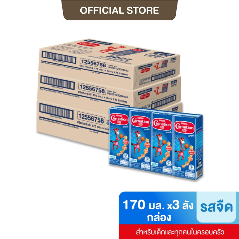 [นมกล่อง] CARNATION นมยูเอชที คาร์เนชัน สมาร์ท โก รสจืด 170 มล. (3 ลัง : 108 กล่อง)